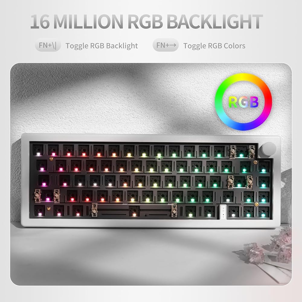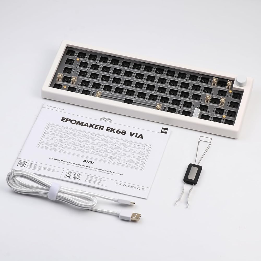 EPOMAKER EK68 65% مجموعة لوحة مفاتيح ألعاب بلوتوث DIY، لوحة مفاتيح ميكانيكية للوحة تثبيت PCB قابلة للتبديل السريع مع مصابيح LED مواجهة للجنوب، وضع ثلاثي، قابلة للبرمجة من خلال Win/Mac (أبيض)