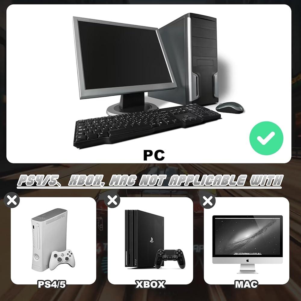 العجلات بما في ذلك أنظمة G920 وG923 وG27 وG25 وG29 وT500 وT300 وFANATEC. يتصل بسهولة بجهاز الكمبيوتر (Windows 11 والإصدارات الأقدم) من خلال إعداد بسيط للتوصيل والتشغيل.