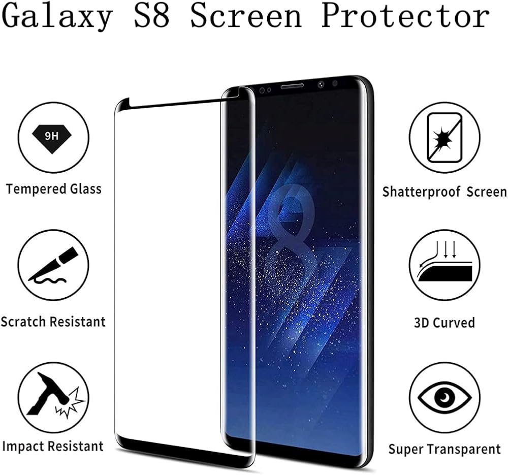 • 【3 Pack Exclusively designed for Samsung Galaxy S8】: 3D Glass Precise cutouts, Full coverage protect the whole screen and Suitable for use with soft phone case to prevent edges-peeling up. compatible with most Samsung Galaxy S8 cases.