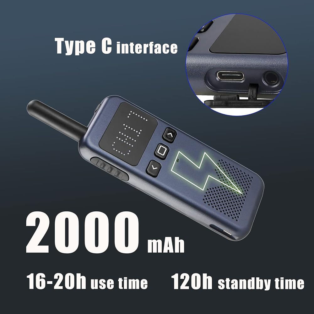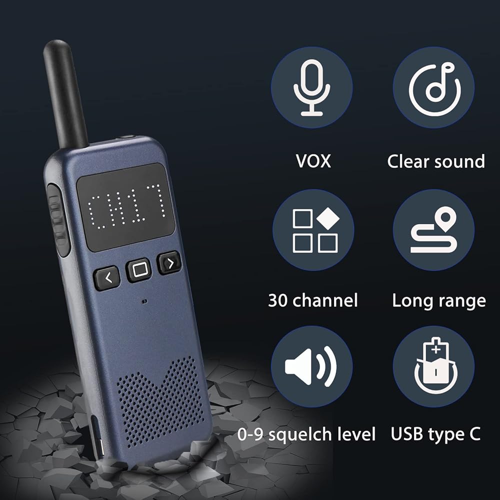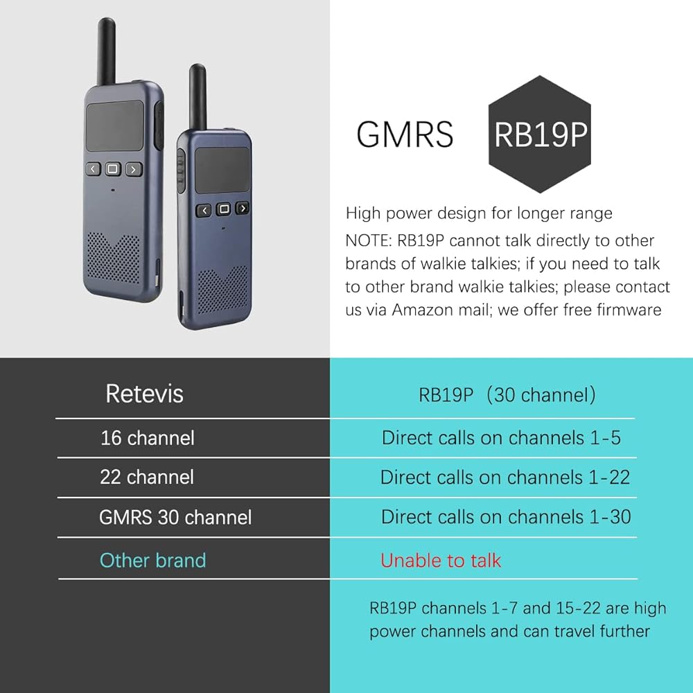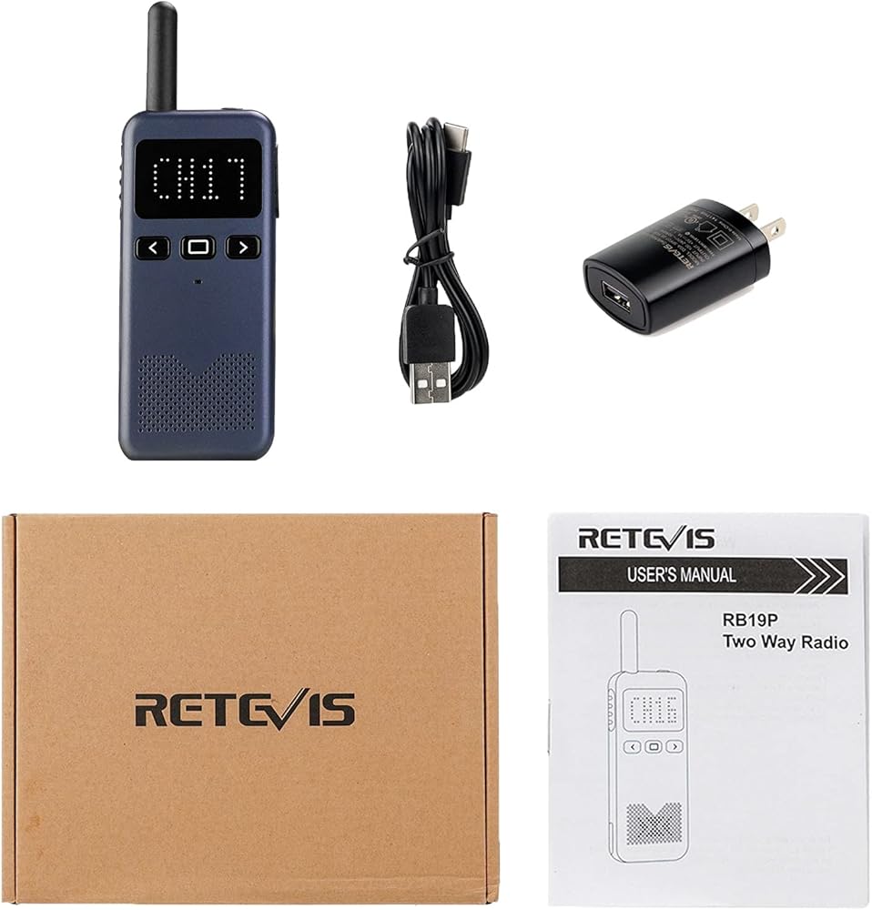 جهاز اتصال لاسلكي عالي الطاقة من Retevis RB19P للبالغين، راديو GMRS طويل المدى ثنائي الاتجاه، صغير، NOAA، USB-C، تنبيه في حالات الطوارئ، للمشي لمسافات طويلة في الهواء الطلق والتزلج باللون الأزرق الداكن