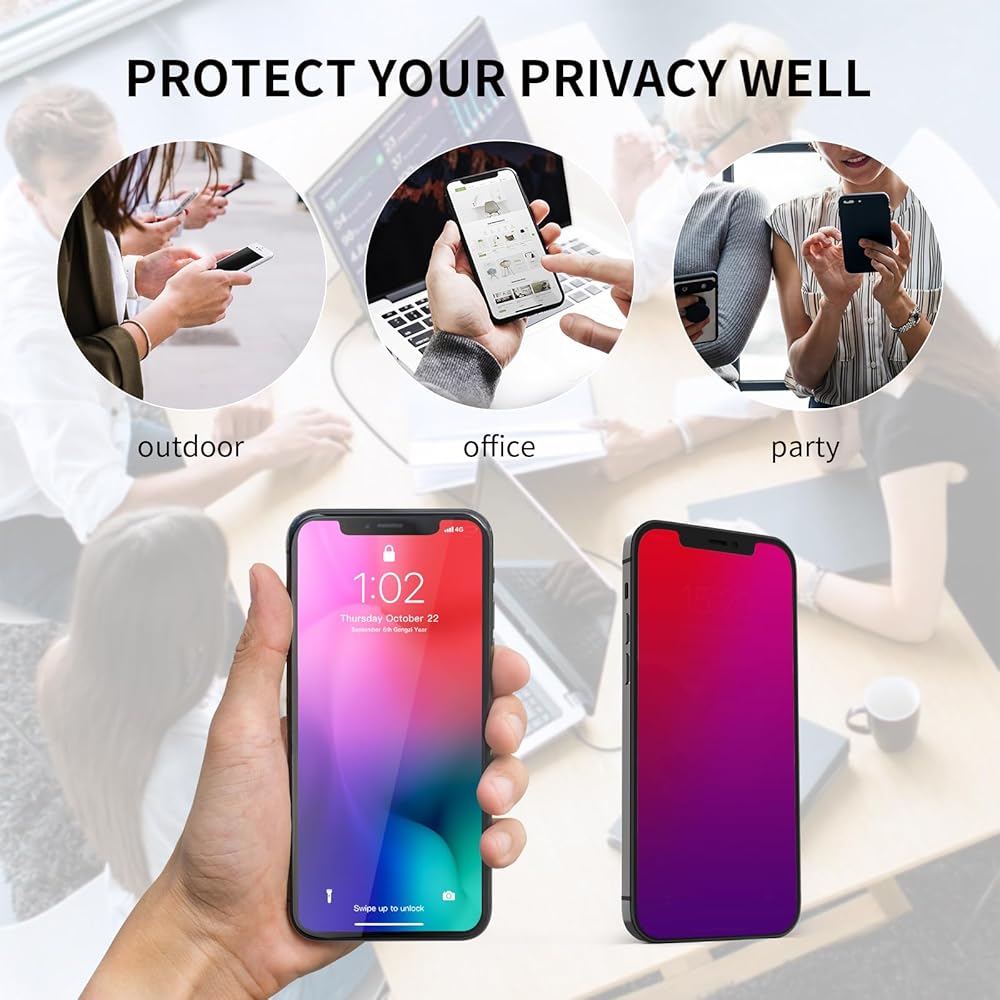 [ Easy to install and pack ] Packaging contents include color privacy screen protector, wet wipes, dust removal sticker.