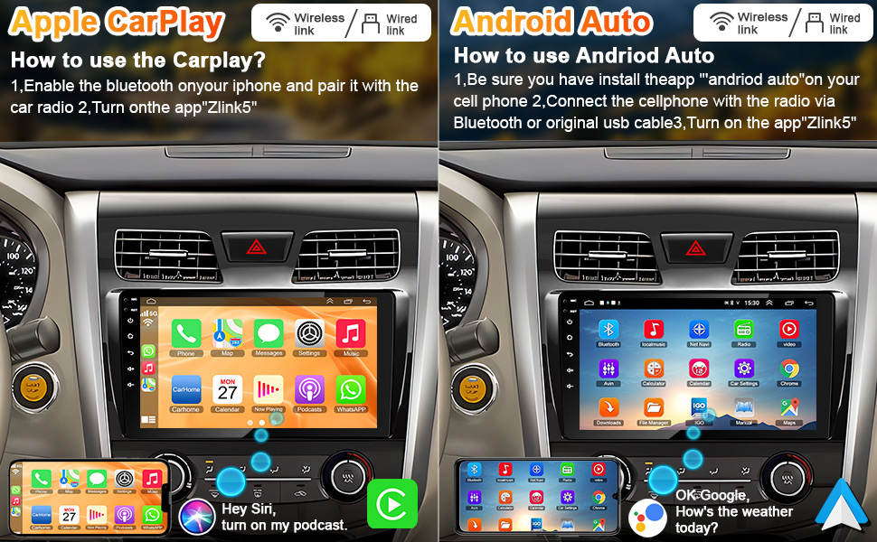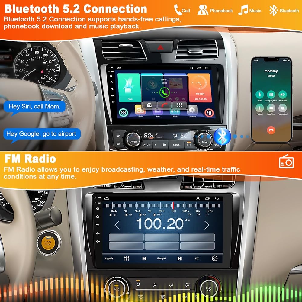 🚗 【Carplay اللاسلكي وAndroid Auto】يتوافق استبدال ترقية Toyota Altima مع Apple CarPlay وAndroid Auto اللاسلكي/السلكي، يمكنك إجراء المكالمات دون استخدام اليدين بمساعدة Siri أو Goo-gle، ويسهل الحصول على جهات اتصال الهاتف ورسائل البريد الإلكتروني. والإشعارات وملاحة الخرائط والموسيقى ومقاطع الفيديو والمزيد. وهذا يعني أنه يمكنك التركيز أكثر على السلامة على الطرق أثناء القيادة!