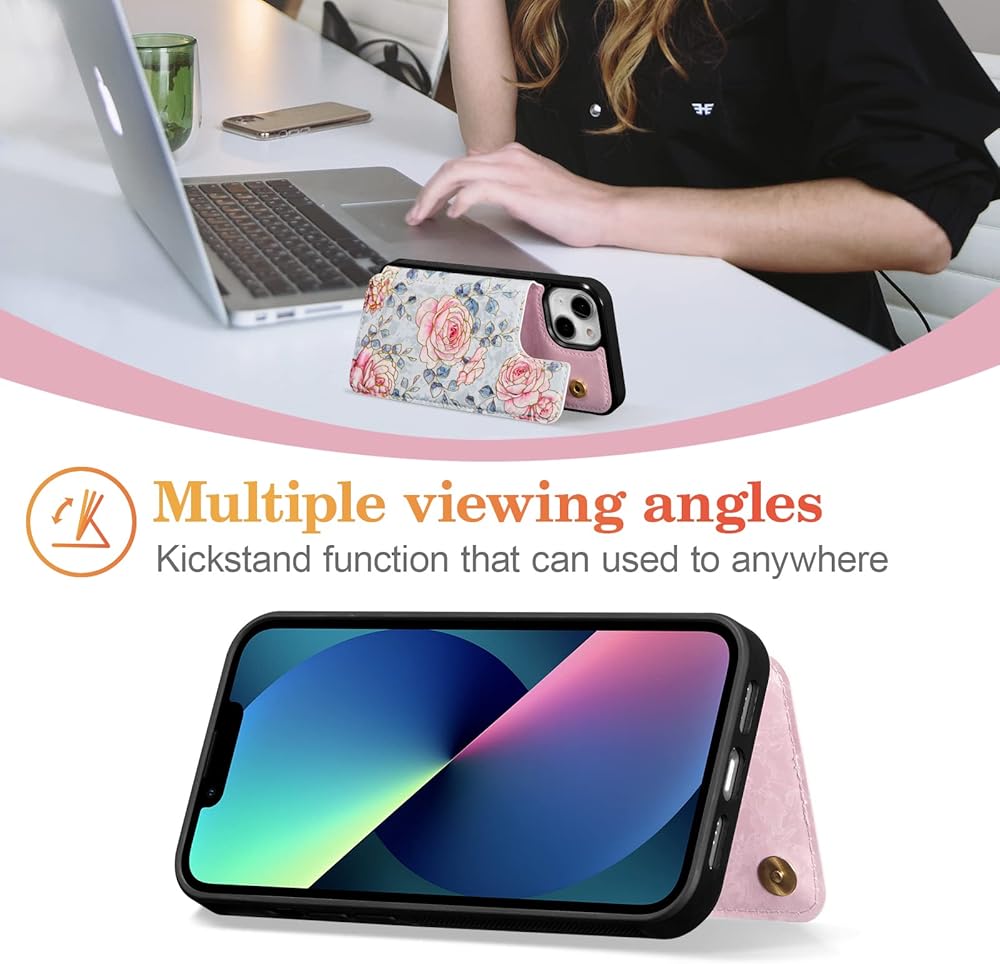 【فتحات للبطاقات ومغناطيس قوي】تحتوي حافظة المحفظة هذه على 3 فتحات للبطاقات + فتحة واحدة لبطاقة الهوية لحمل بطاقاتك وبعض النقود بشكل آمن دون إخراج محفظتك بالخارج. إبزيم مغناطيسي مزدوج قوي يحمل البطاقات بإحكام.