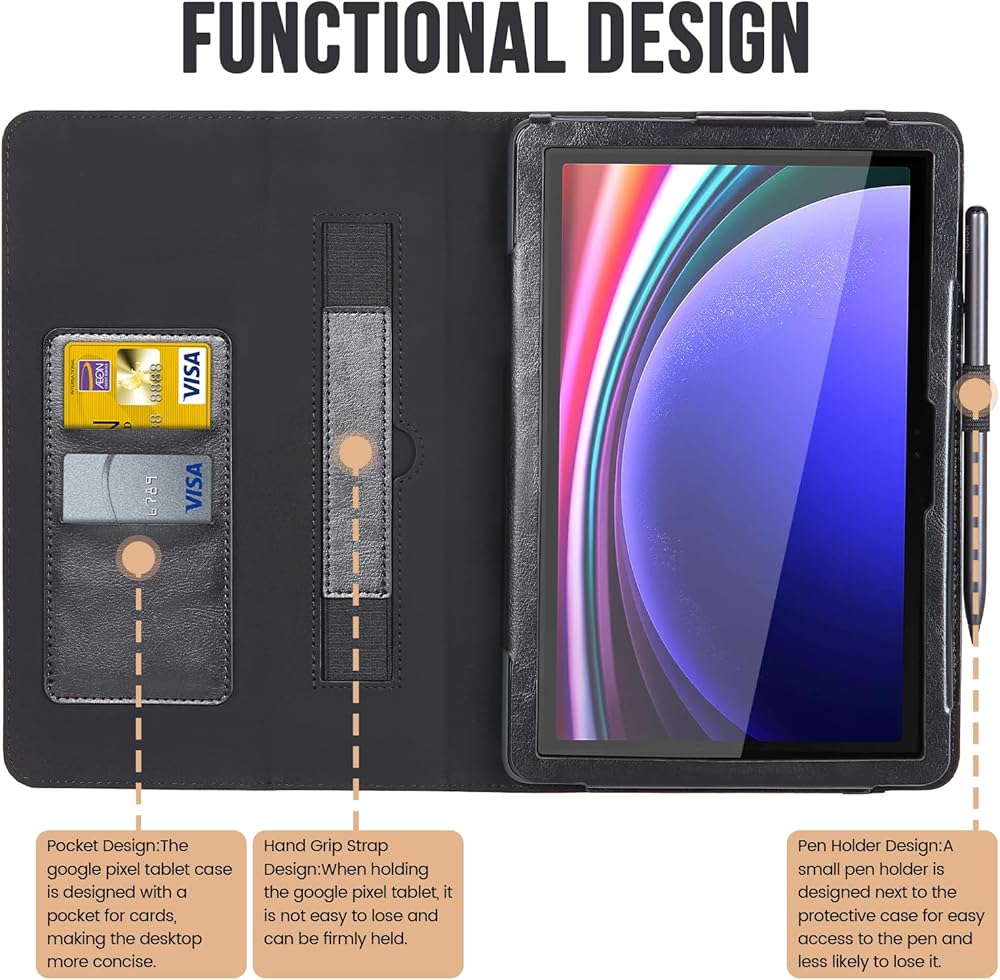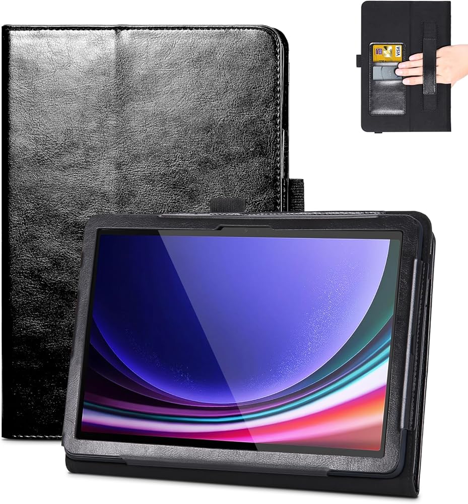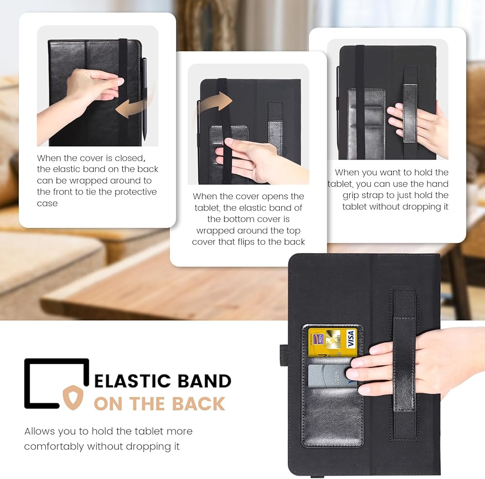 ✔【مصمم للحماية الكاملة】 مصنوع من جلد البولي يوريثان الفاخر وحامل داخلي ناعم من الألياف الدقيقة يحمي جهازك اللوحي Samsung Galaxy الخاص بك بشكل فعال من أي خدوش أو جرجر أو أي أشياء صلبة أخرى غير مرغوب فيها. جيب البطاقات المدمج مناسب لك لوضع بطاقات الائتمان الخاصة بك في الحافظة. ويمنحك حزام اليد الداخلي تجربة استخدام مريحة بيد واحدة.