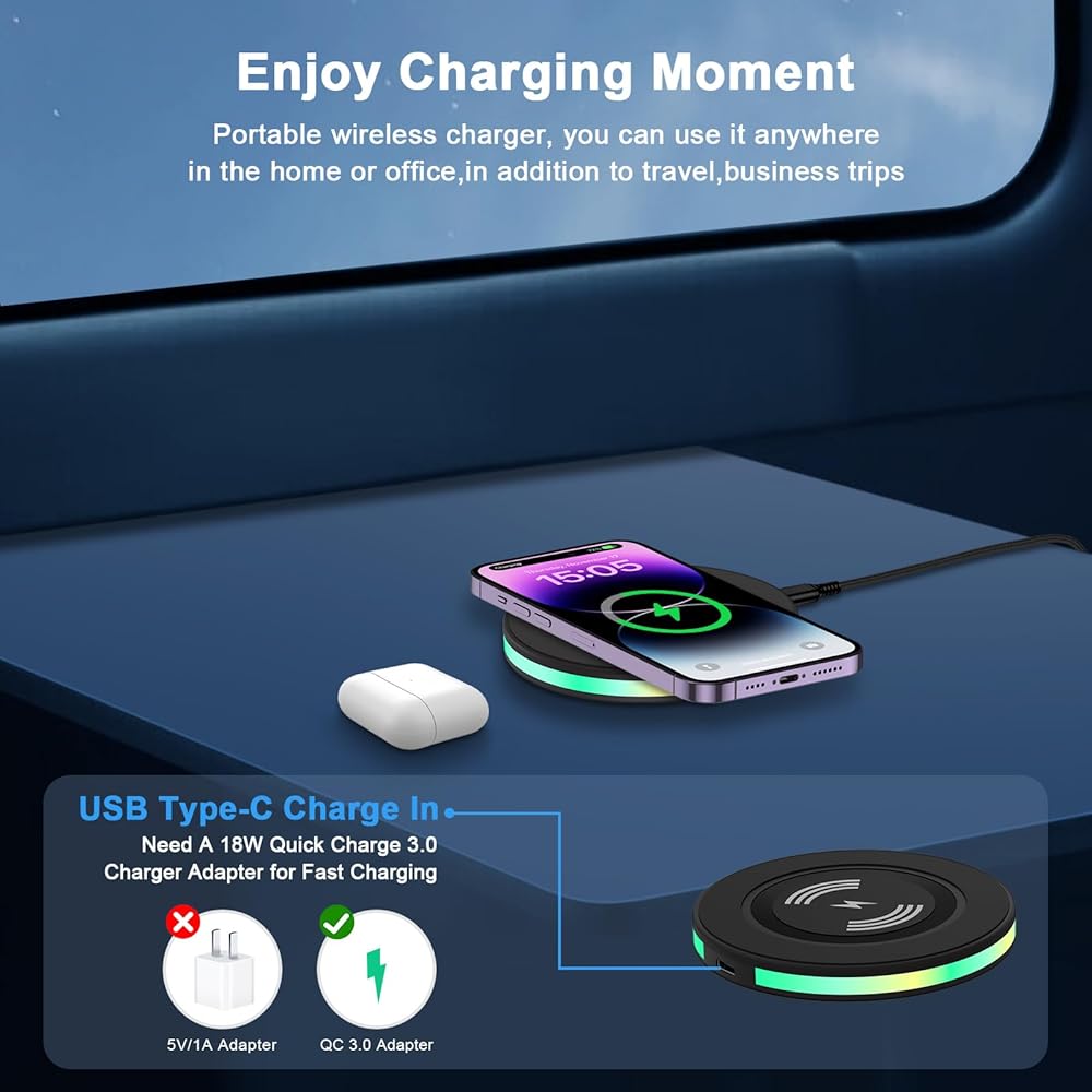 Quietly uses LED lights to display charge status, allowing undisturbed sleep with no notification sounds