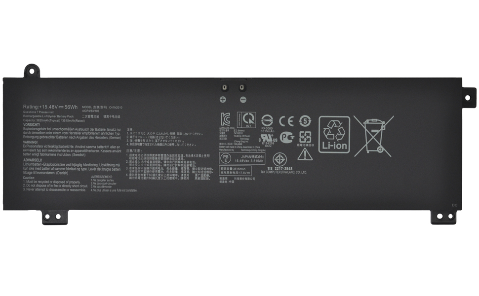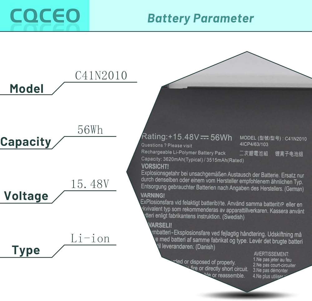 بطارية C41N2010 لـ ASUS ROG Strix G15 G513IC G513IH G513QC G513QE G17 G713QE G513IC-HN055T G513QC-HF002T G713QE-HX008T G713QE-HX009T Series 0B200-03890000 4ICP4/63/103 15.48 فولت / 56 وات في الساعة / 3620 مللي أمبير في الساعة
