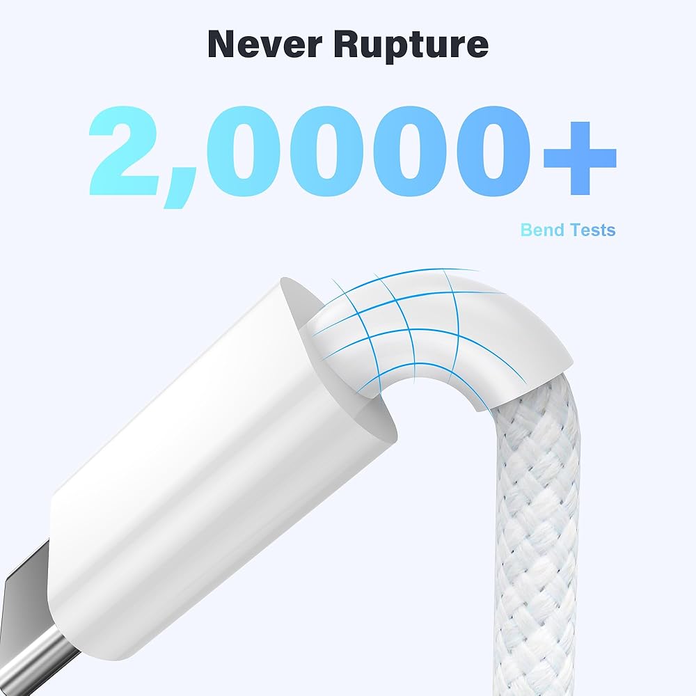 • Robust and Reliable: Our USB C charger cable boasts a durable nylon exterior and a resilient fiber core, designed to endure up to 18,000 bends. This offers you a product that is both durable and reliable.