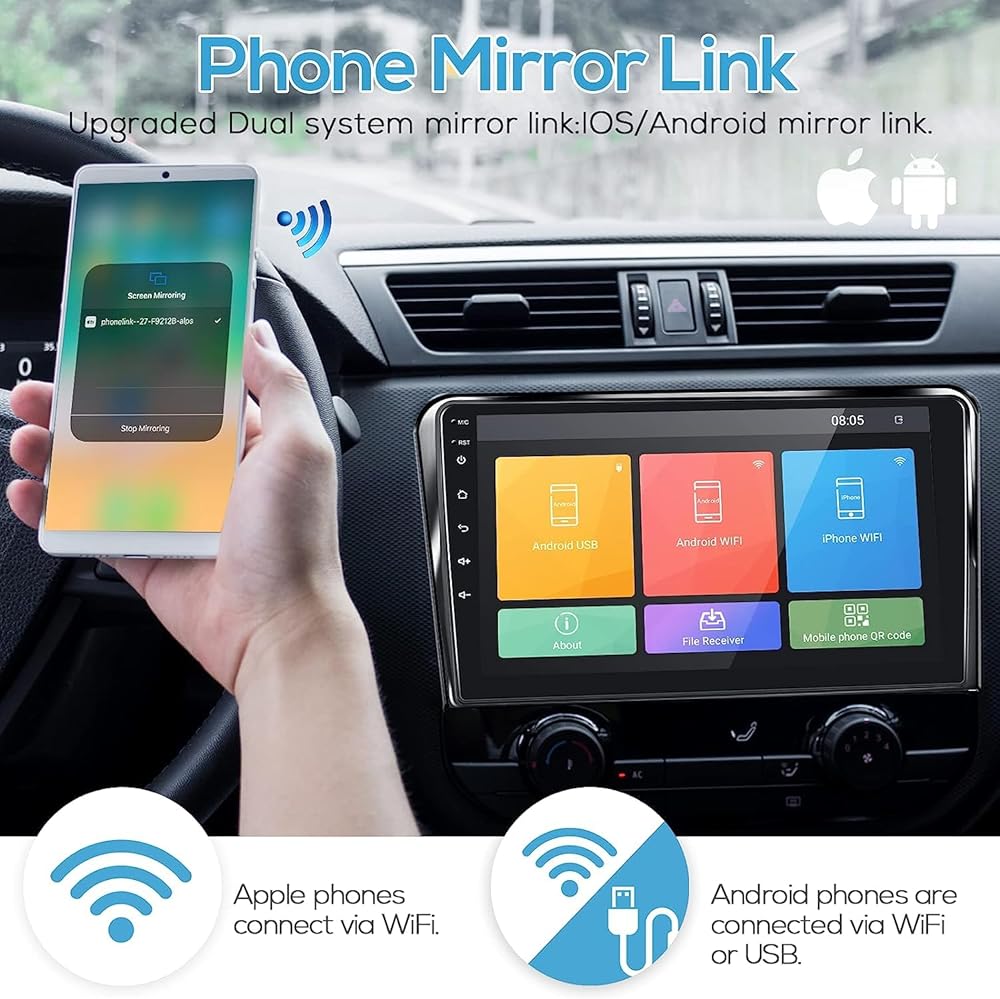 🚗[وظيفة رابط مرآة الهاتف] - يدعم راديو السيارة بشاشة تعمل باللمس سيكويا تندرا وظيفة رابط المرآة لهواتف Android وIOS (بجانب Samsung)، مما يسمح بعرض جميع برامج هاتفك الذكي بسهولة على راديو شاشة اللمس. مثل الملاحة عبر نظام تحديد المواقع العالمي (GPS) وتشغيل الموسيقى ومشاهدة الأفلام وما إلى ذلك. دعم تشغيل الفيديو بدقة 1080 بكسل.
