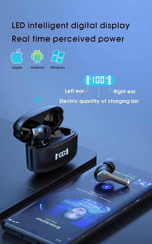 5 [الشحن أثناء التنقل] يتميز بشاشة LED رقمية ذكية، ويستمر وقت التشغيل لأكثر من 3-4 ساعات من شحنة واحدة وإجمالي 30 ساعة مع علبة الشحن. استمتع بالشحن السريع، لشحن العلبة القابلة لإعادة الشحن بالكامل لمدة 1.5 ساعة فقط عبر الشحن السريع بطريقة شحن مريحة من النوع C دون أي قيود.