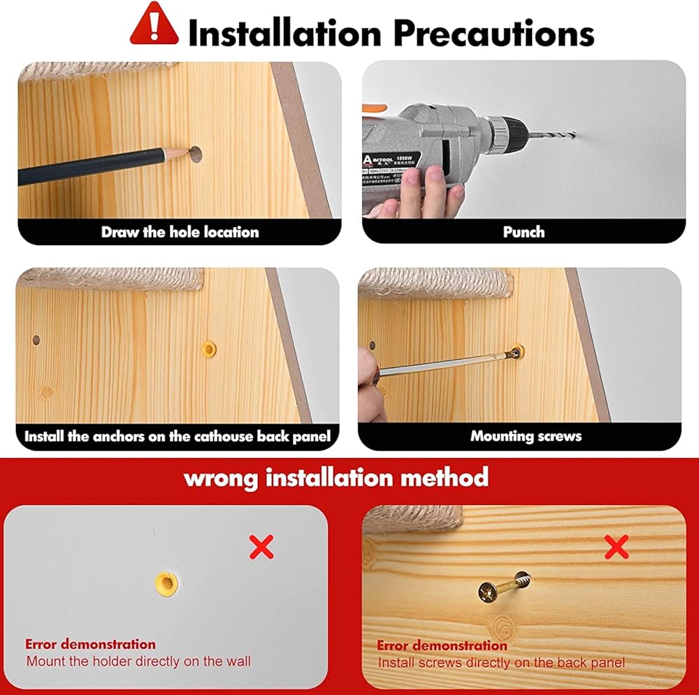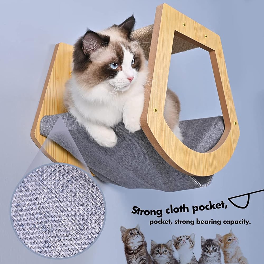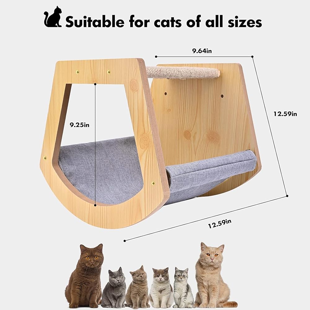 • تصميم فريد - قطعة أثاث جديدة وأنيقة للقطط، يتم ربط هذه الأرجوحة مباشرة على الحائط. إنها توفر مساحة رأسية لقطتك لتجلس وتغفو وتشاهد ما حولك، الجزء العلوي يحتوي على لوح مجثم للقطط.