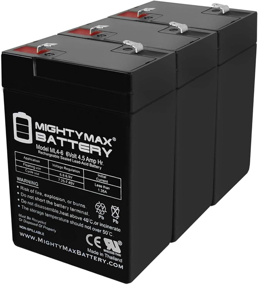 - ML4-6 SLA عبارة عن بطارية حمض الرصاص المختومة (SLA) بقدرة 6 فولت 4.5 أمبير قابلة لإعادة الشحن ولا تحتاج إلى صيانة - معتمدة من UL