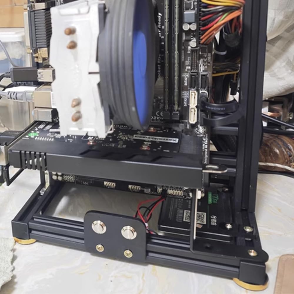 مقعد اختبار الكمبيوتر الشخصي مفتوح الإطار لحالة الكمبيوتر الهوائية، حامل اختبار إطار التجميع الإبداعي للكمبيوتر الشخصي من الألومنيوم، يدعم حامل الكمبيوتر اللوحة الأم ATX، معلق على الحائط الأفقي العمودي المحمول