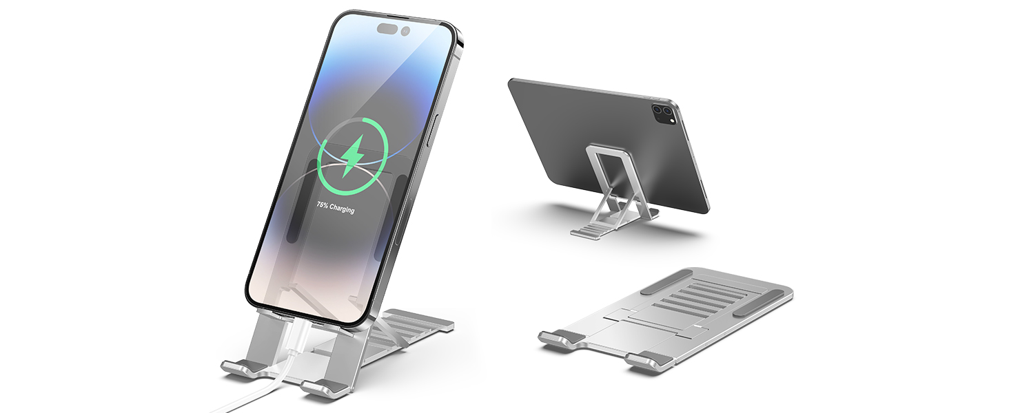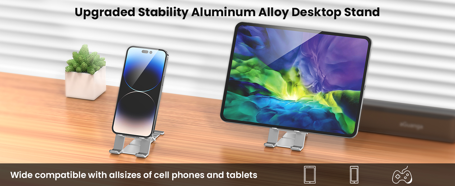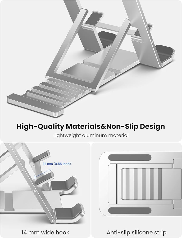 حامل هاتف خلوي ثابت وثابت - حامل الهاتف المكتبي هذا مصنوع من مادة سبائك الألومنيوم عالية الجودة لتعزيز الثبات؛ أقدام غير قابلة للانزلاق على القاعدة وحامل الهاتف لضمان بقائه ثابتًا في مكانه بالإضافة إلى تثبيت هاتفك أو جهازك اللوحي بثبات