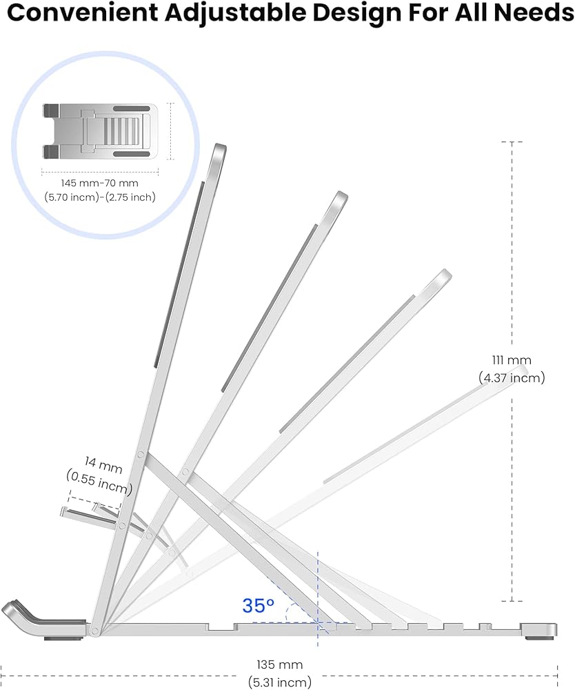 زاوية قابلة للتعديل - زاوية الحامل يمكن تعديلها بسهولة (4 زوايا مختلفة للاختيار)، يمكنك ضبط الزاوية الأكثر راحة للاستمتاع بالأفلام والبرامج التلفزيونية وFaceTime مع الأصدقاء ومشاهدة YouTube أو الفيديو