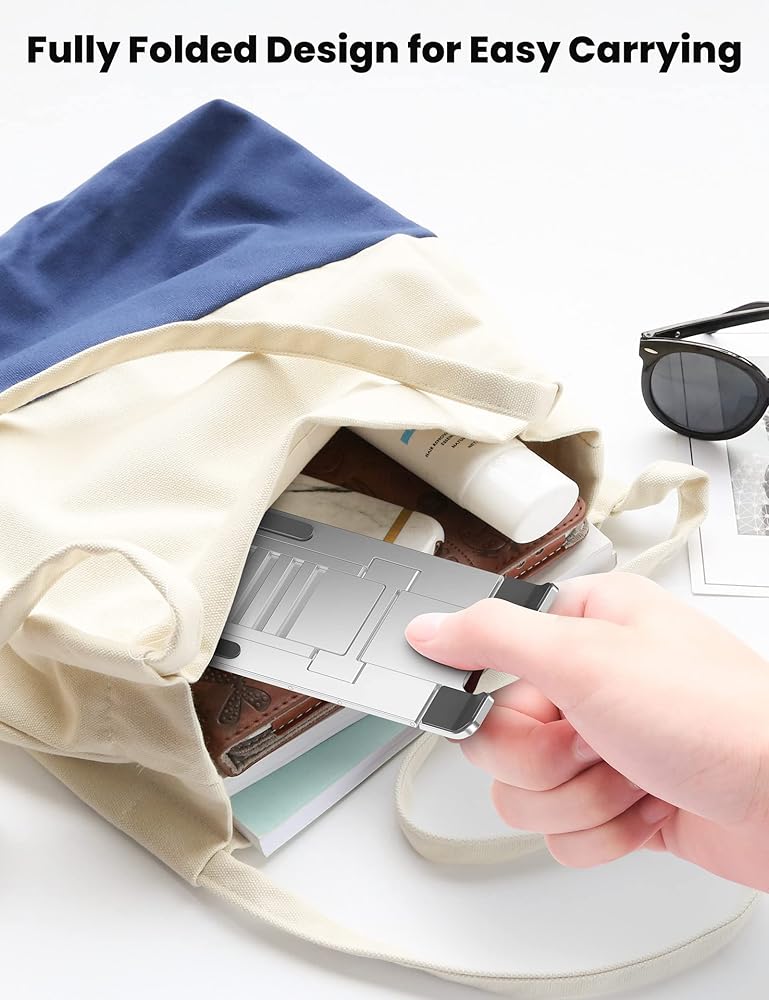 حامل هاتف فائق النحافة للمكتب - يمكن طي قاعدة حامل الهاتف هذه بالكامل ويبلغ سمكها 4 مم (0.15 بوصة) عند طيها، لذلك يمكنك حملها بسهولة في محفظتك أو حقيبة الظهر أو الأمتعة أو الجيب؛ إنه مناسب لك للاستخدام عند الخروج والسفر