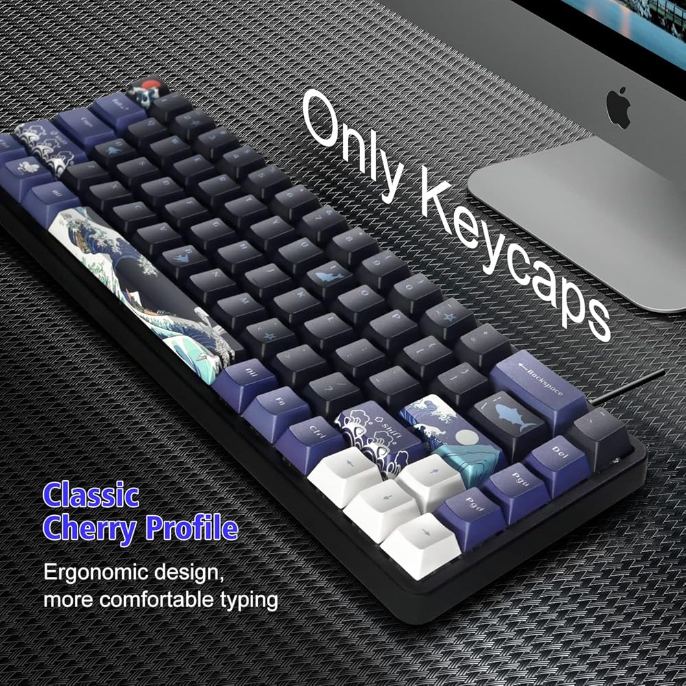 XVX PBT Keycaps 60 بالمائة، موجة رائعة من أغطية المفاتيح اليابانية Kanagawa، مجموعة أغطية مفاتيح مخصصة DYE-Sub، أغطية مفاتيح ذات شكل الكرز لـ 61/64/66/68 لوحة المفاتيح الميكانيكية Cherry Gateron MX Switches، مجموعة 78 مفتاحًا