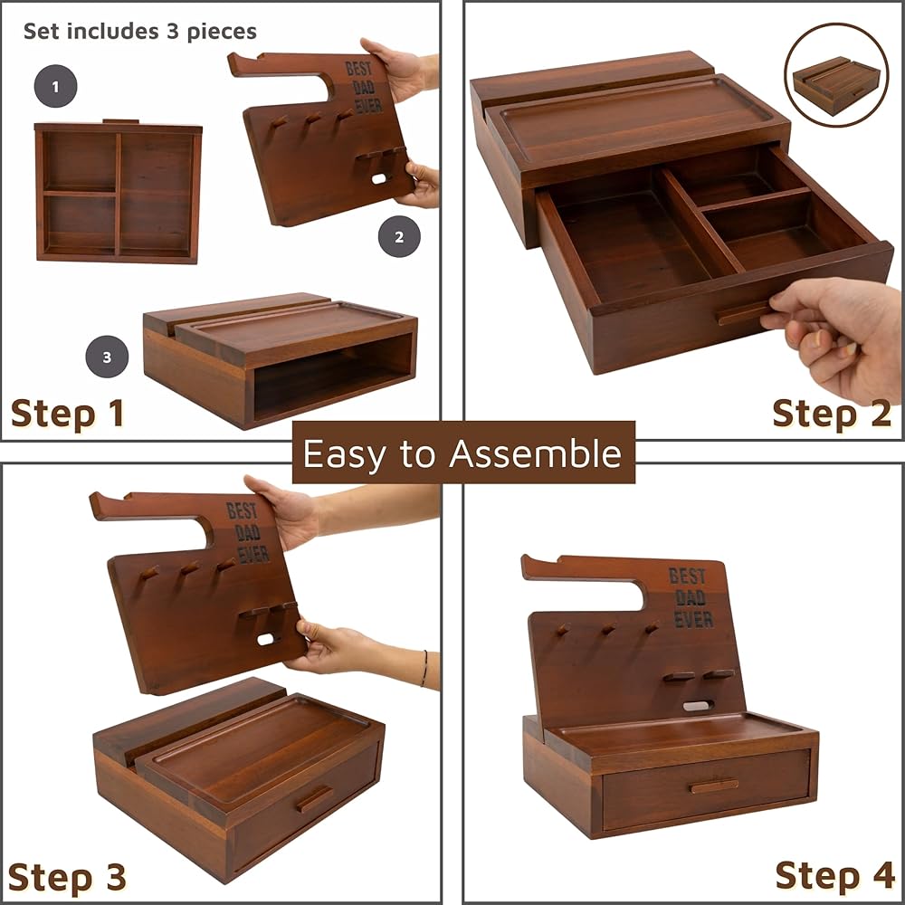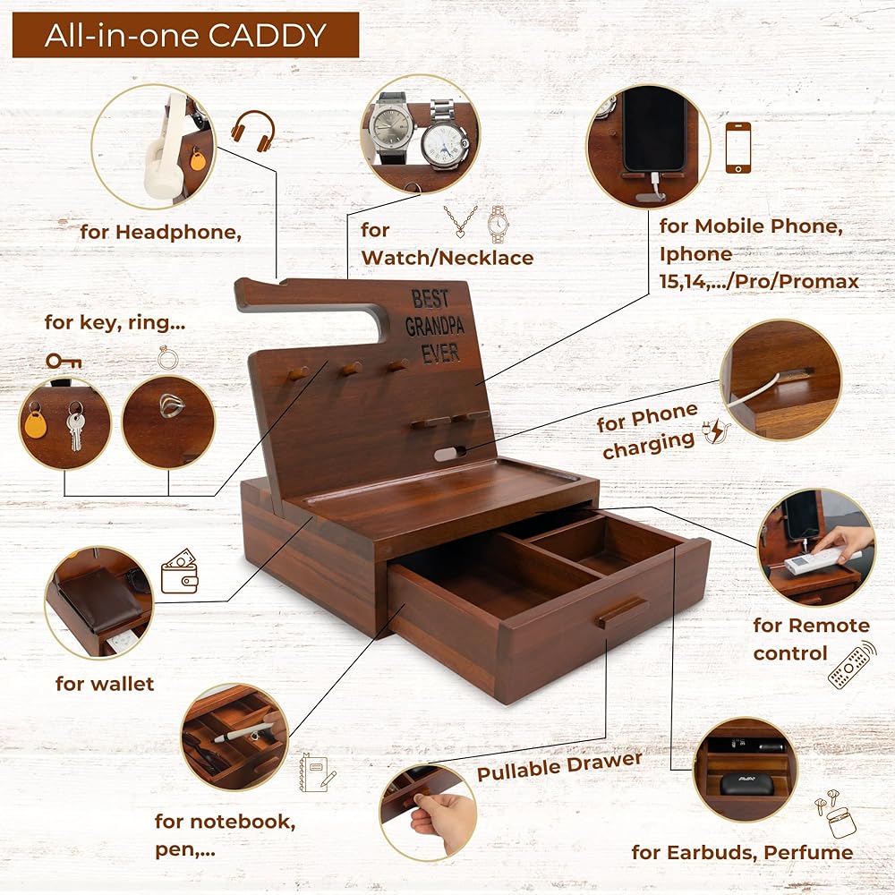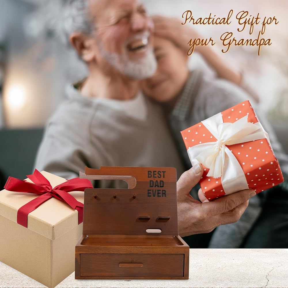 مساحة أكبر: هدايا عيد الأب للجد، تحتوي قاعدة الشحن الخاصة بنا على درج سفلي قابل للسحب، ويمكن للدرج السفلي أن يساعدك في تخزين ملحقات سطح المكتب الإضافية. هذا مناسب أيضًا للنساء اللاتي يضعن على طاولة الزينة لتخزين بعض أدوات المكياج أو العطور والمجوهرات.