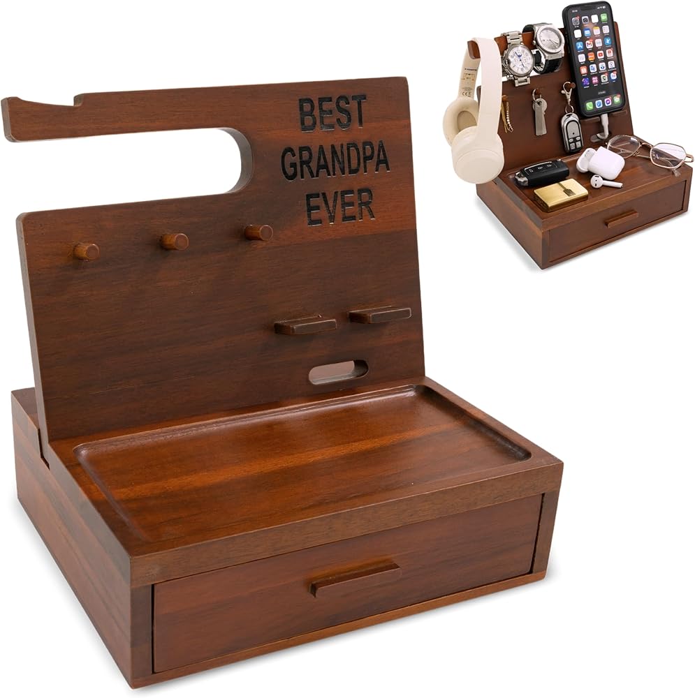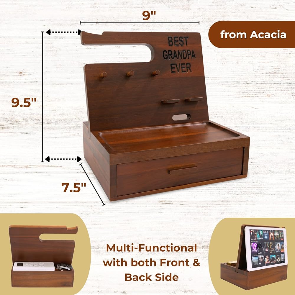 هدايا الأجداد: اشتريها كهدية لعيد ميلاد زوجك، أو زوجتك، أو والدتك، أو لنفسك. ابدأ في عيش حياة أكثر وعيًا وبساطة وتنظيمًا مع محطة الشحن الخشبية الجديدة.