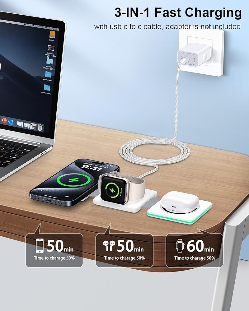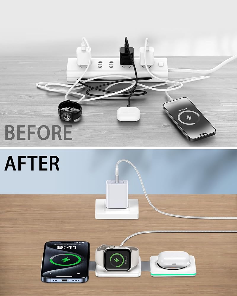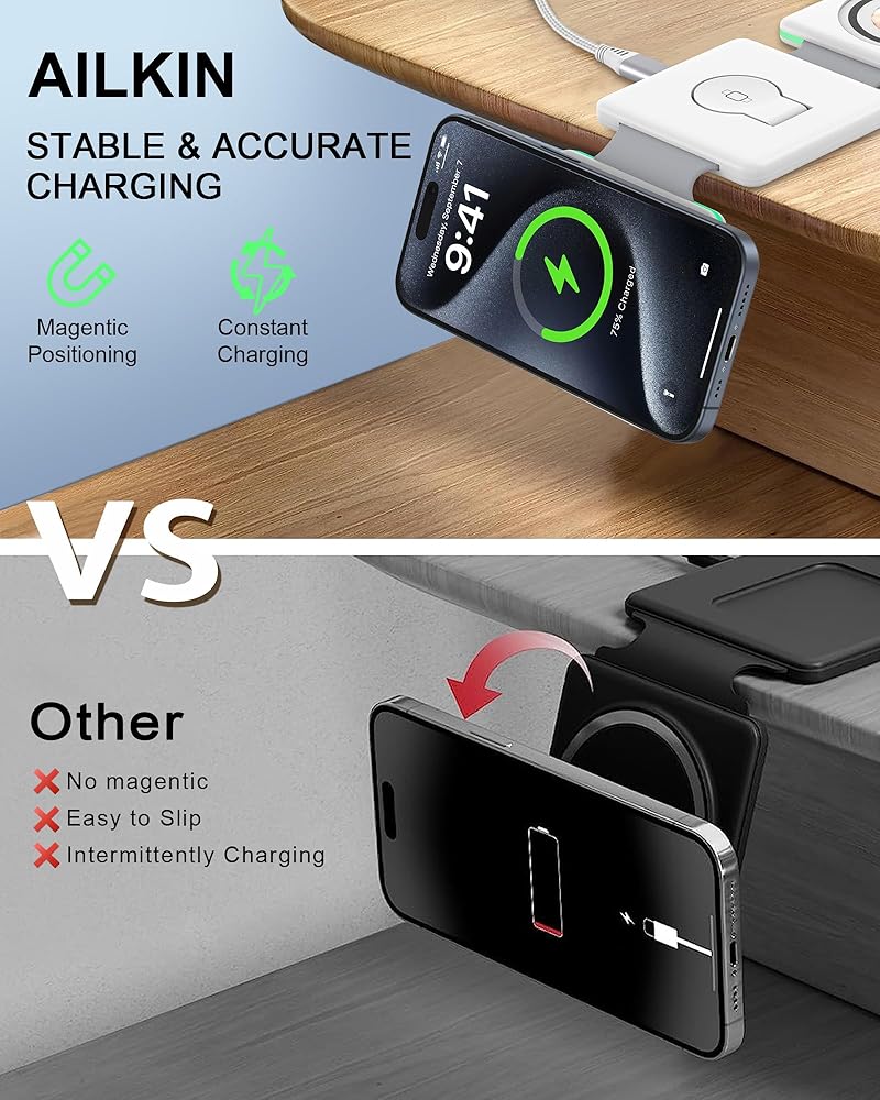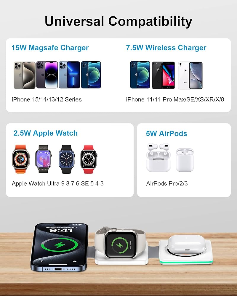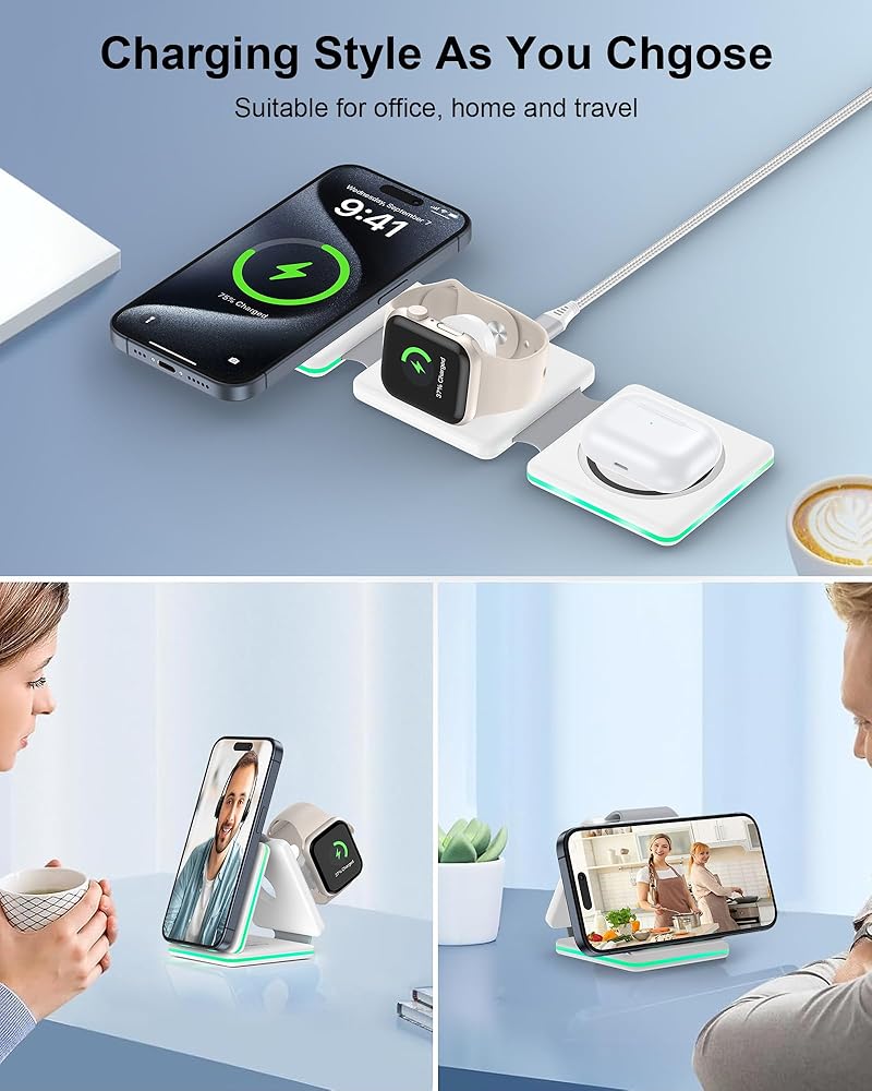 ✅Wireless Charger for Apple Devices, one is enough for travel, and 3 different charger pads meet your charging demands at the same time.