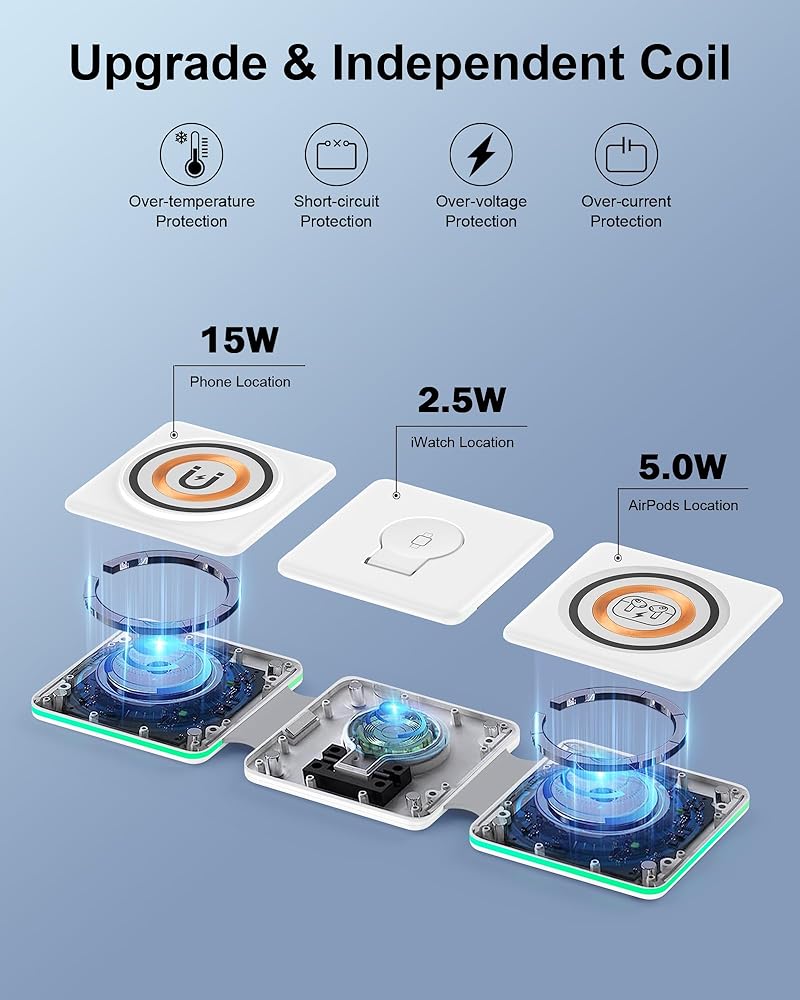 ✅Qi and FCC-certified, built-in smart chip, prevents overcharges, overcurrent, overvoltage, and overheating.