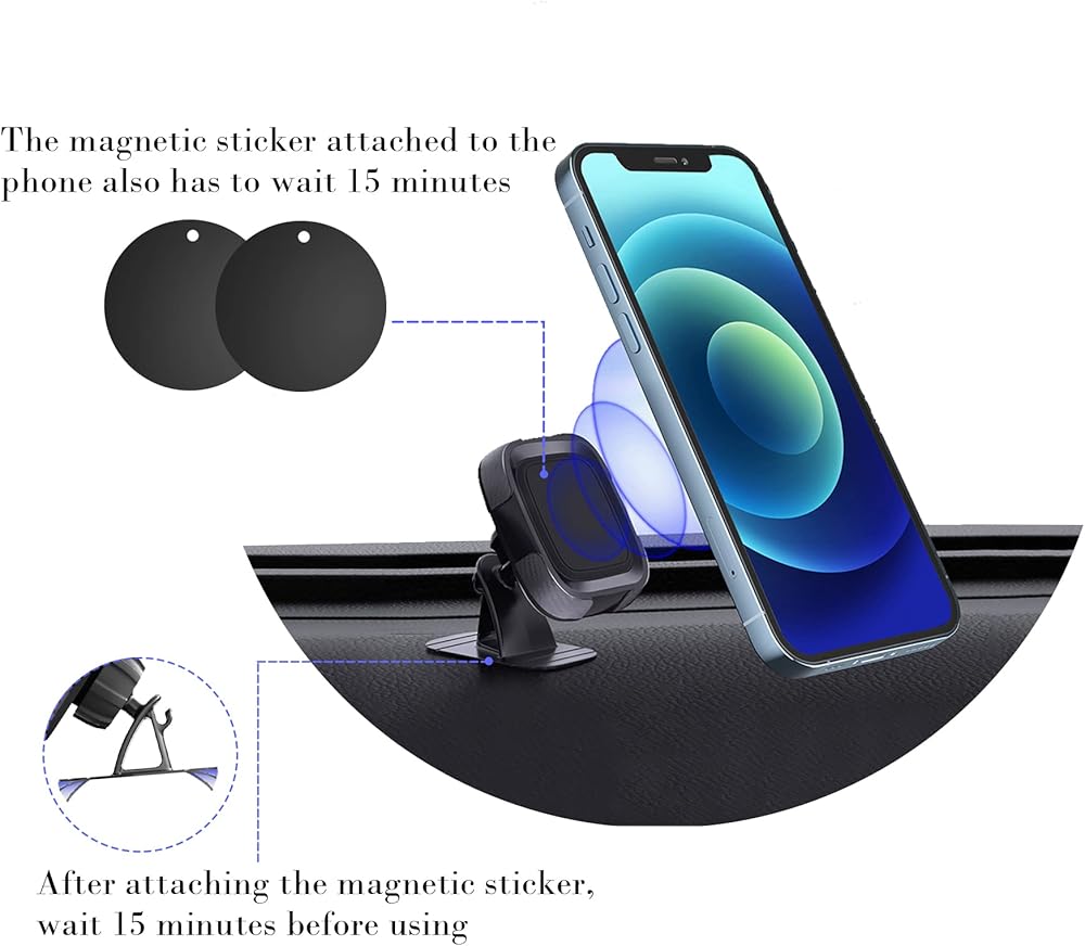 حامل هاتف السيارة المغناطيسي من urehepo، حامل هاتف على لوحة القيادة للسيارة، حامل هاتف يدور 360 درجة للسيارة، حامل هاتف محمول لاصق قوي VHB متوافق مع iPhone وSamsung والهواتف الذكية والأجهزة اللوحية