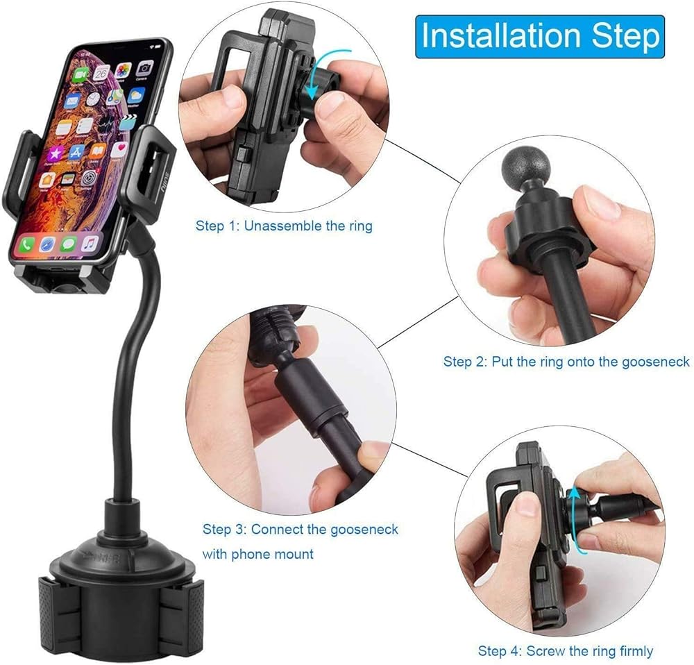 Flexible and Adjustable for your preferred viewing angle Adjust the flexible yet stiff gooseneck mount into a position of your choosing. You are also able to rotate the screen 360° Positioning The cup holder is one of the best places to mount your phone without obstructing your view and your dashboard.