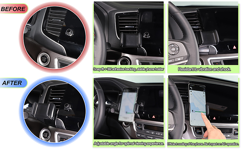 🏎️『سهلة التركيب』: حامل الهاتف بدون استخدام اليدين سهل التركيب ولا يتطلب أي حفر. بفضل تصميمها ذاتي اللصق، ما عليك سوى تنظيف لوحة فتحة التهوية في الكونسول المركزي، والضغط عليها بقوة في مكانها، والاستمتاع براحة التنقل والمكالمات الهاتفية بدون استخدام اليدين. وهذا يتيح لك الاستمرار في التركيز على الطريق.