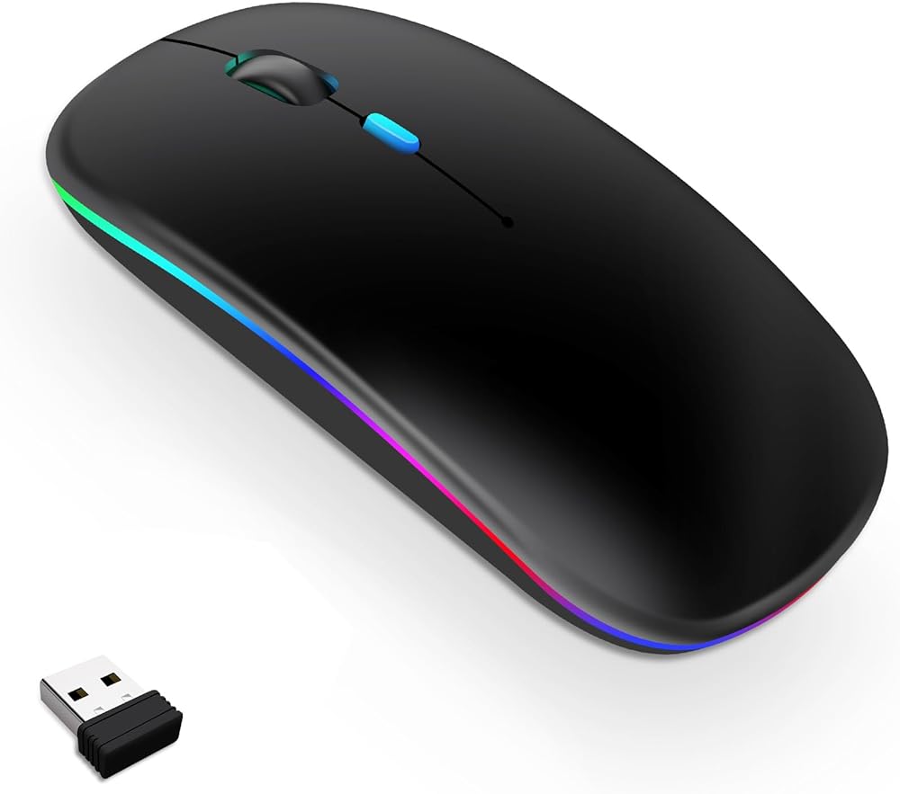Please charge it for 2 hours before using it for the first time, the red light will be on when charging, the red light will turn off automatically and show blue light when fully charged, press the mode switching button at the bottom of the mouse to pair and turn on the 2.4G mouse (switch to “ON” position), take out the USB and Type-C 2-in-1 receiver from the slot at the bottom of the wireless mouse, and then choose the Type-C or USB receiver Plug and Play!