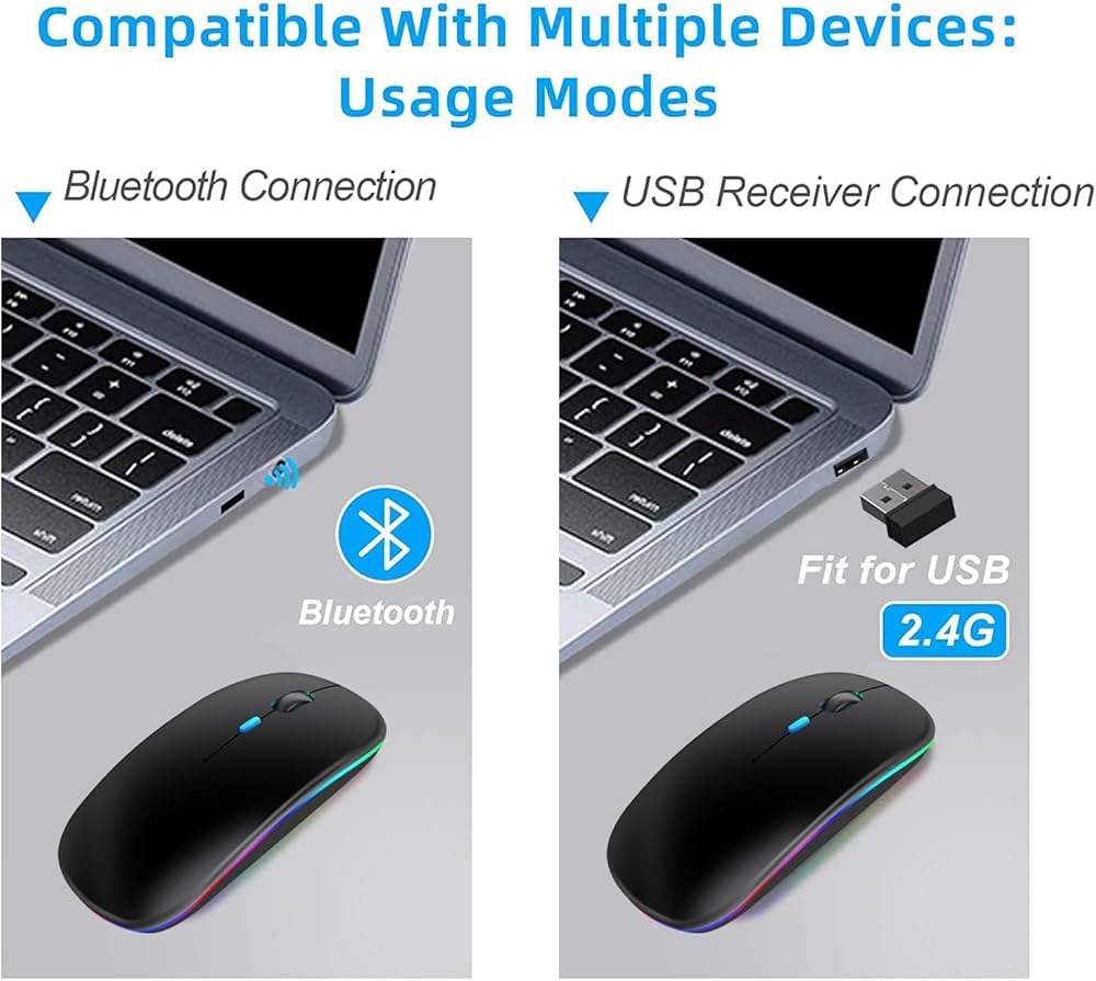 Bluetooth Wireless Mouse - Bluetooth 5.2/3.0 +2.4GHz USB-A + 2.4GHz USB-C [Compatible with USB port and TypeC port devices] Bluetooth 5.2/3.0 +2.4GHz USB-A + 2.4GHz USB-C