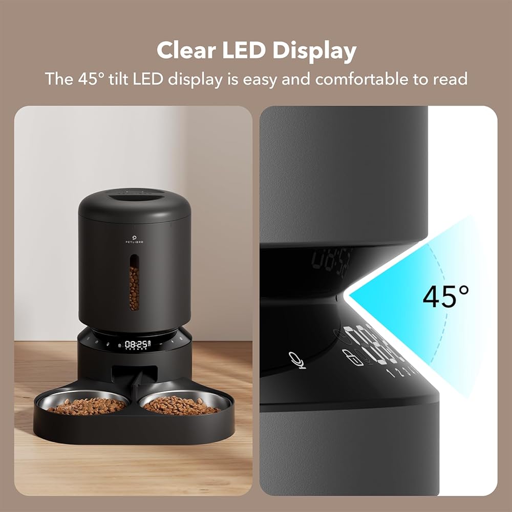 مكالمة صوتية وشخصية للوجبات في اتجاهين: وحدة تغذية الحيوانات الأليفة الأوتوماتيكية من PETLIBRO للقطط والكلاب مع ميكروفون ومكبر صوت مدمجين يسمح لك بالبقاء على اتصال مع طفلك الأليف في أي مكان وفي أي وقت. قم بتسجيل رسالة صوتية (تصل إلى 10 ثوانٍ) يتم تشغيلها أثناء تناول الطعام، واضبط الأوقات (0-5) لتشغيل مكالمة الوجبة، أو قم بإرسال تذكيرات أو أرسل فقط "أنا أحبك". يتم حذف التسجيل القديم عند الانتهاء من تسجيل صوتي جديد. يمكنك التحقق بسهولة من مستوى الطعام من خلال النافذة الشفافة وإضافة الطعام في الوقت المناسب