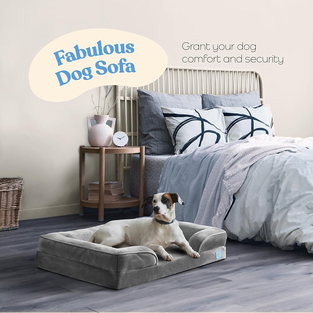 Egg Crate Orthopedic Foam Base: The egg-crate foam core soothes pressure points and provides great support for aching joints and muscles so pets can enjoy a more restorative night's rest. The peak-and-valley design also works to improve air circulation for enhanced comfort. Sleep Surface: The sleep surface is lined with embossed flannel fabric that is luxuriously soft to the touch, a great complement to the durable woven upholstery linen material covering the sides and bolsters. Bolster Design: The fluffy-filled bolsters are lightweight but supportive. The three-sided design ensures plenty of high-loft headrest cushion, as well as cozy nooks and crannies for pets to burrow into. The bolsters also provide great orthopedic support for aching joints.