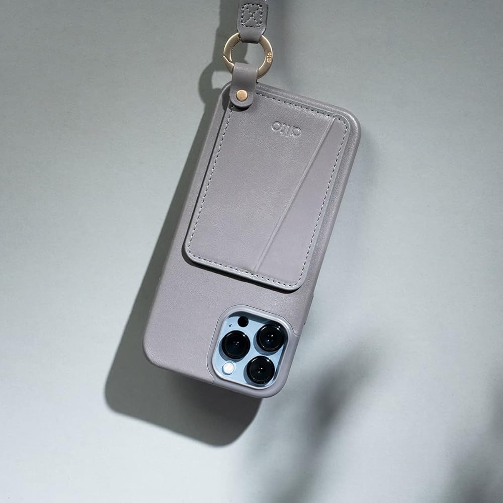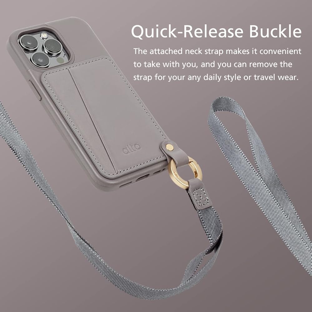 حافظة Alto Anello 360 Lanyard مصممة لهاتف iPhone 13 Pro (6.1 بوصة 2021)، حافظة محفظة جلدية إيطالية واقية من السقوط مع حامل بطاقات قابل للدوران وتصميم حزام الرقبة (رمادي أسمنتي)