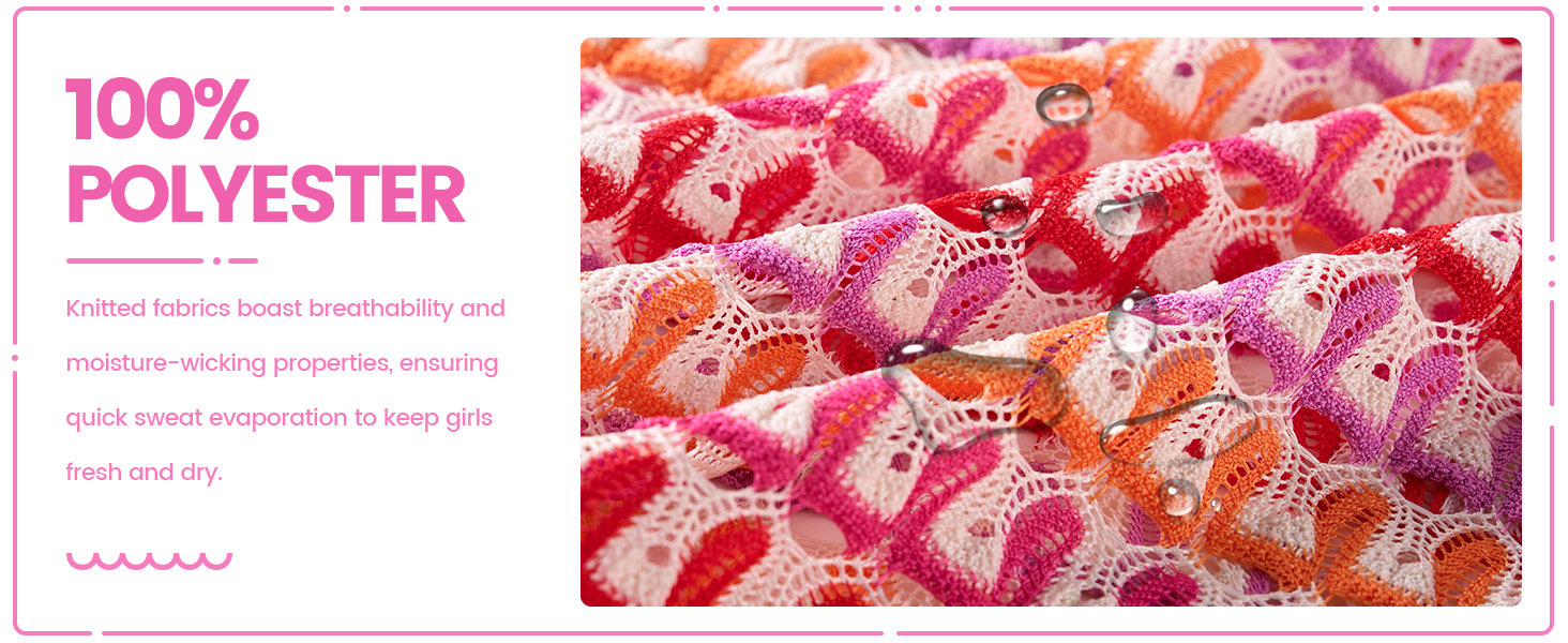 Girls Cover-up: The girls swim cover up ensures your daughter stays private and warm after swimming on the shore。 Crafted from knitted fabric with a breathable mesh design, girls cover ups for swimwear is light and cool, perfect for carefree beach essentials. Available year-round, including angle season, we offer a variety of swimsuit styles to pair beautifully with this cover-up, completing her beach-ready look.
