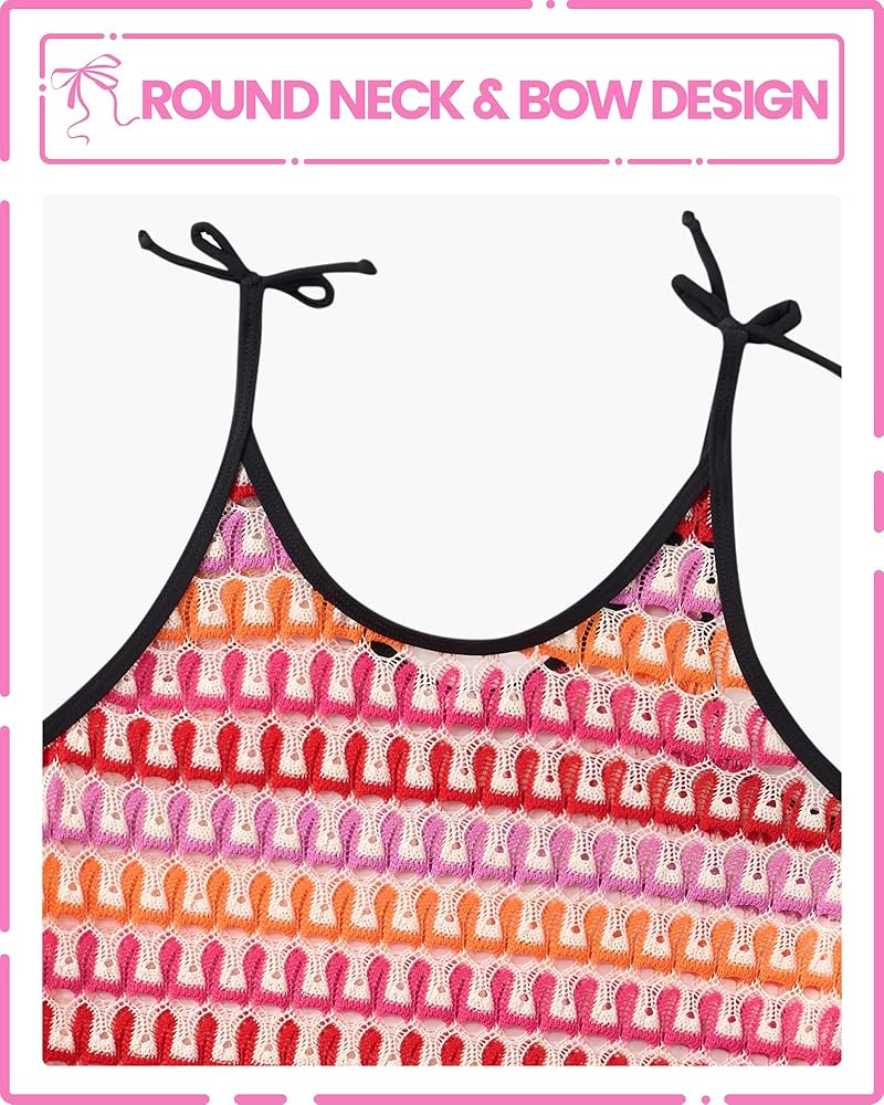 Soft Coverage Feature: This cover ups for swimwear features a round neckline with dainty spaghetti straps adorned with a fixed bow detail, adding an adorable touch to the swim cover up. The girls swim coverup, gauzy fabric provides just the right amount of gentle coverage.