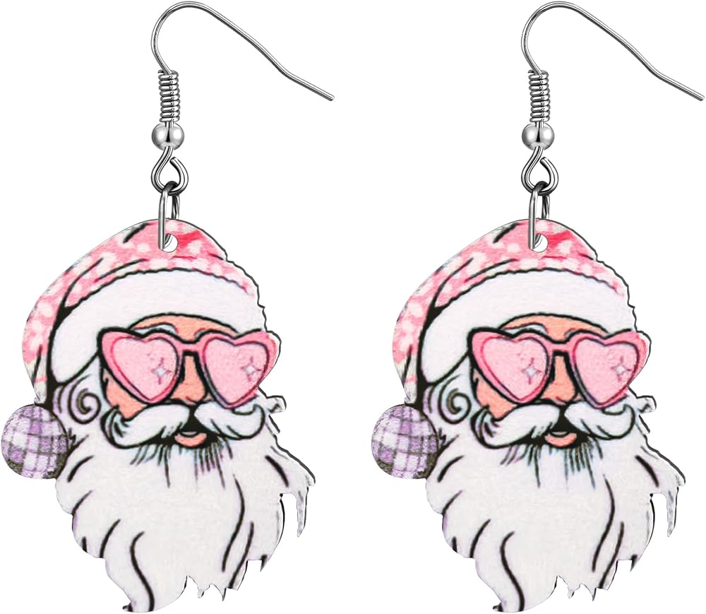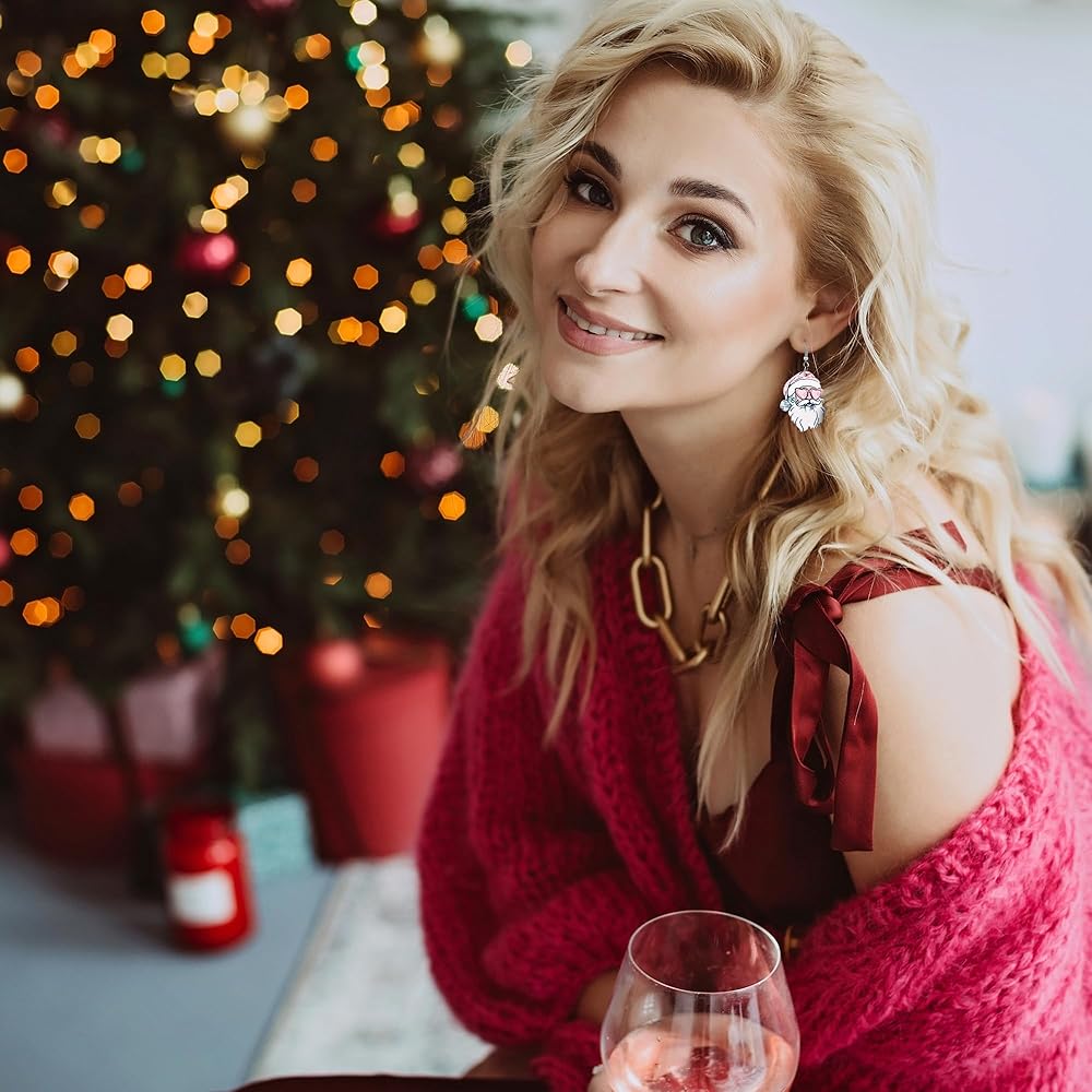 • أقراط وردية للنساء: أقراط سانتا الوردية هذه حققت نجاحًا كبيرًا! الأقراط الوردية الفاتحة مشرقة وملونة، مع رسم مطبوع على كلا الجانبين. إنها خيار مثالي لأي شخص يبحث عن إضافة لمسة احتفالية ومرحة إلى سترة عيد الميلاد الوردية القبيحة.