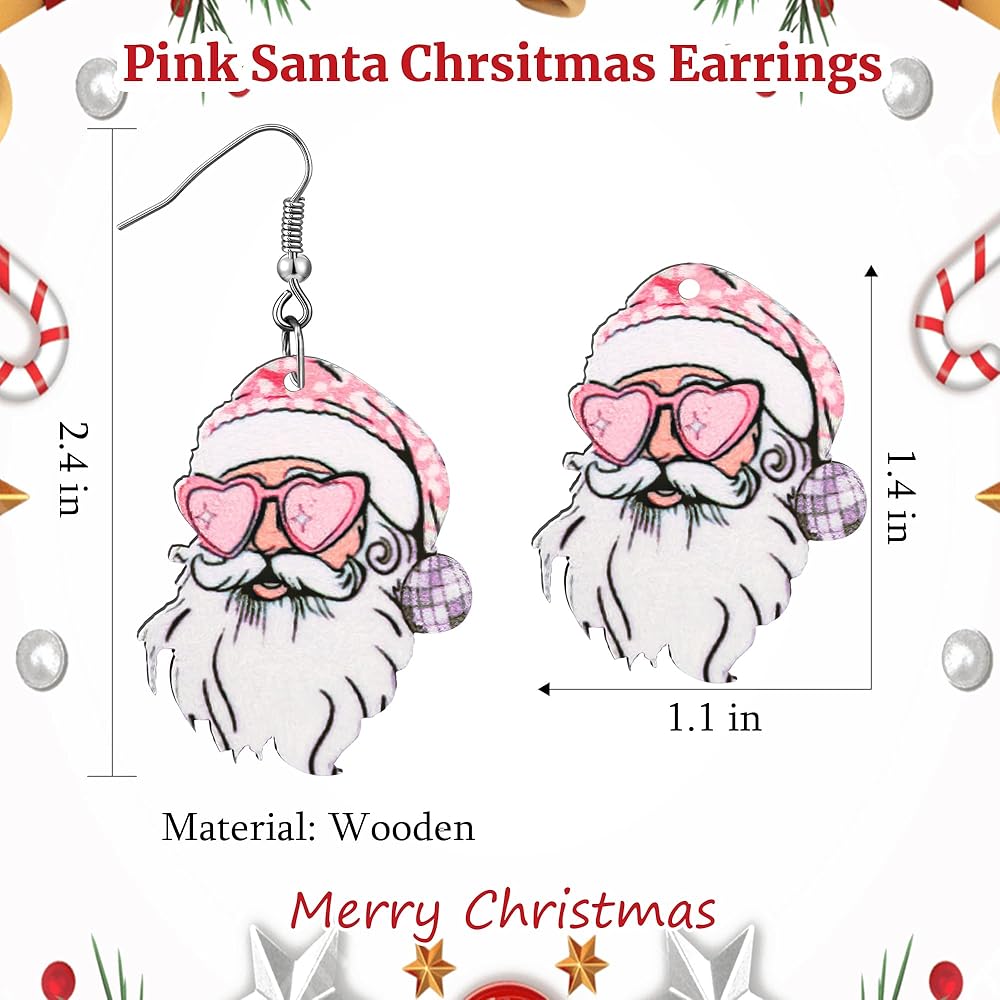 أقراط عيد الميلاد الوردي للنساء أقراط سانتا الخشبية للمراهقين خفيفة الوزن الوردي سانتا تتدلى أقراط عيد الميلاد مجوهرات الفتيات هدايا عيد الميلاد كما عيد الميلاد تخزين الحشو الملحقات