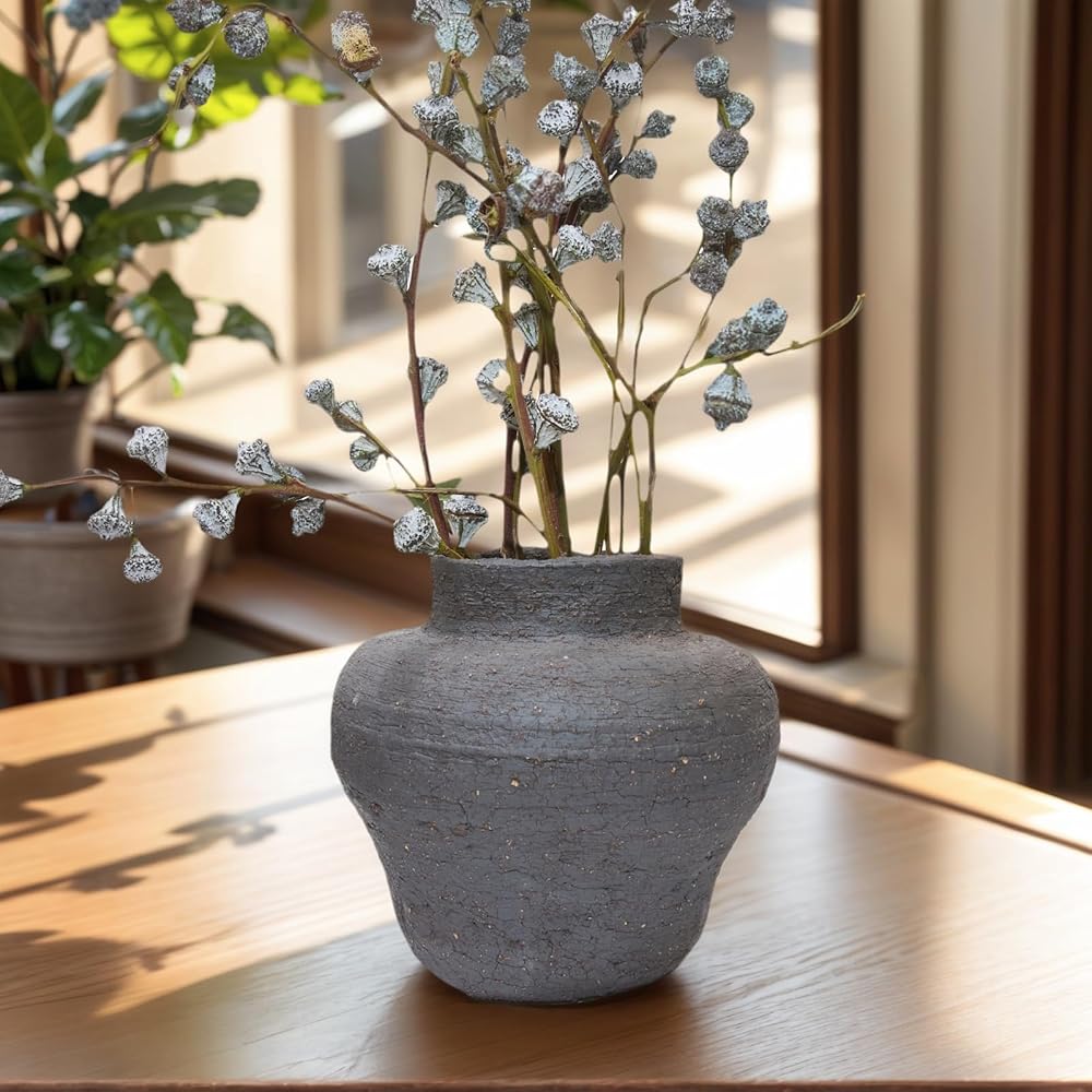 Ideal for VINTAGE VASES enthusiasts, this antique vase offers a distressed finish, blending seamlessly with rustic farmhouse vase and rustic ceramic vase style