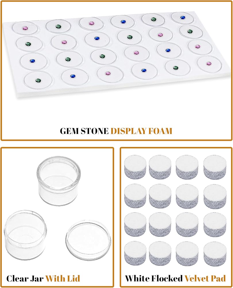 تشمل هذه العبوة: تحتوي هذه العبوة على 5 بطانات إسفنجية لصينية عرض الأحجار الكريمة، كلها باللون الأبيض. تحتوي كل صينية على 36 برطمانًا من الأكريليك الشفاف، مما يوفر إجمالي 180 برطمانًا، مما يوفر مساحة واسعة لتنظيم وتخزين الأحجار الكريمة والعملات المعدنية والمجوهرات الخاصة بك بشكل آمن.