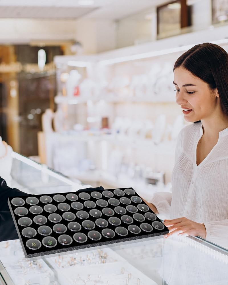 أنيق وعملي: تم تصميم هذا المنتج لتوفير حل فعال لتنظيم مجموعتك وحمايتها وعرضها. توفر الصواني مظهرًا أنيقًا واحترافيًا. سواء للاستخدام الشخصي أو العرض الاحترافي، فإنها تسلط الضوء بشكل فعال على الأحجار الكريمة أو العملات المعدنية الخاصة بك.