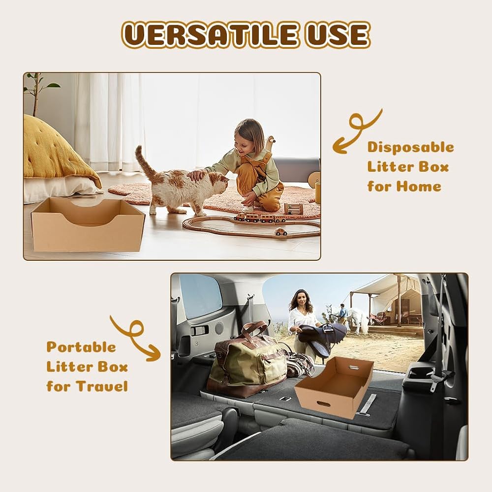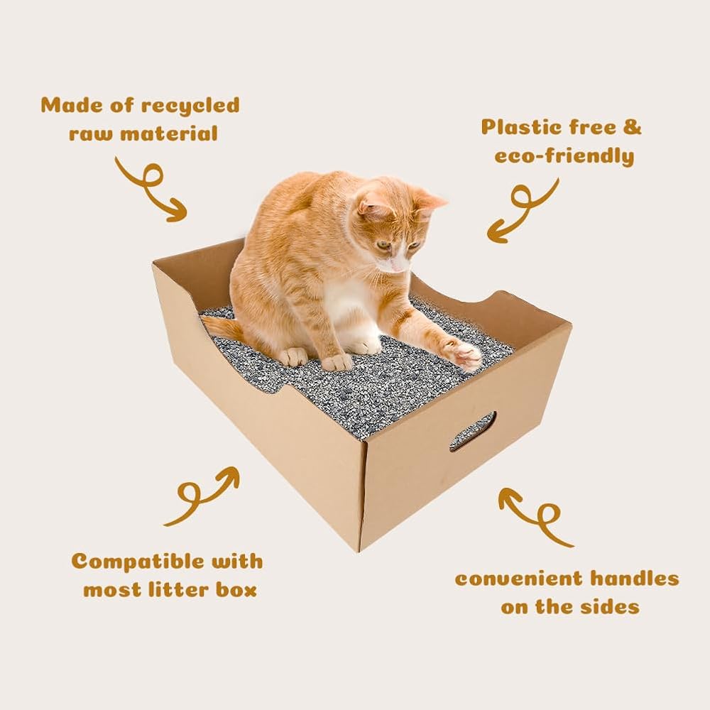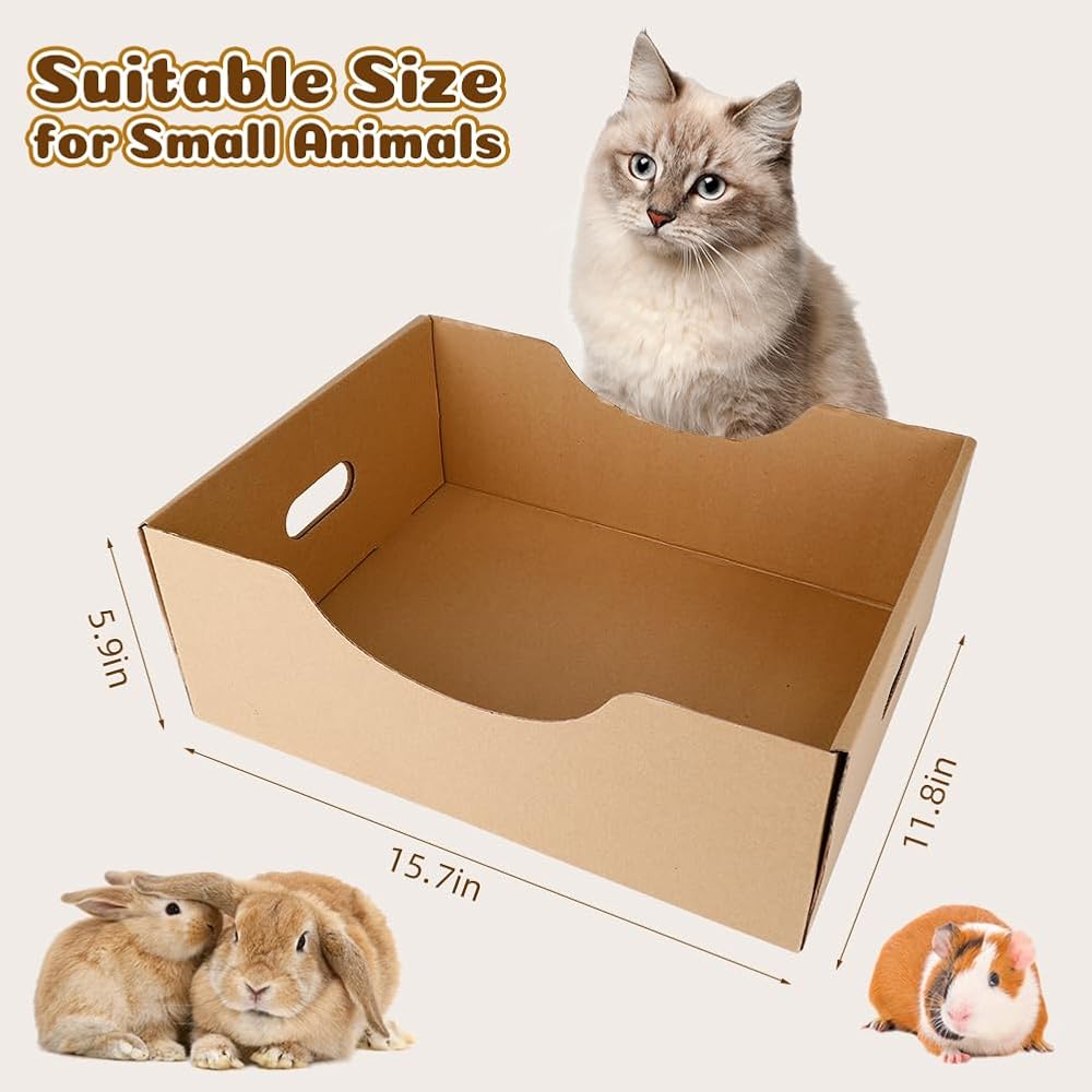 صندوق فضلات القطط للاستعمال مرة واحدة: 10 قطع من وعاء فضلات القطط الورقية المحمولة للسفر / الداخل - بطانة صندوق فضلات من الورق المقوى مع مقابض للقطط الصغيرة والارانب والخنزير الغيني