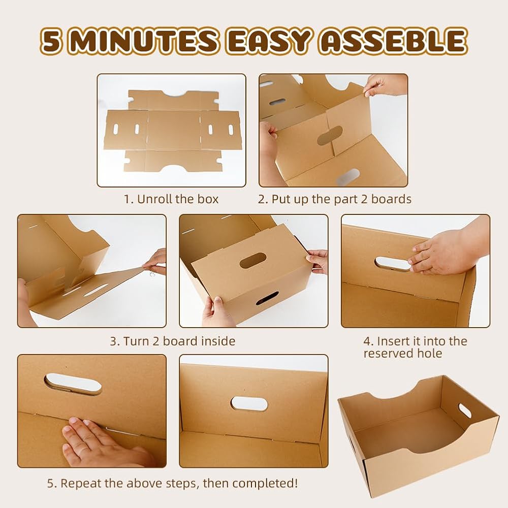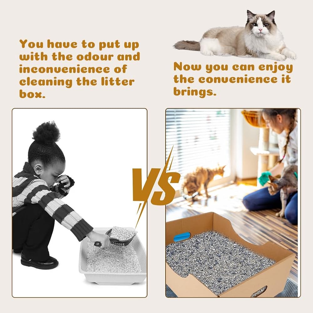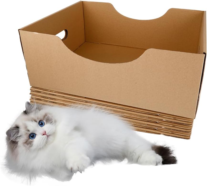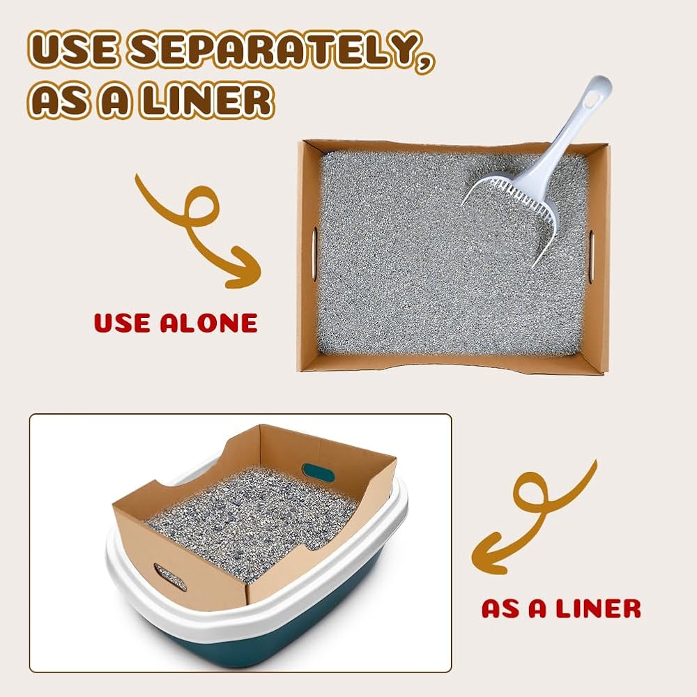 صندوق فضلات القطط للاستعمال مرة واحدة: 10 قطع من وعاء فضلات القطط الورقية المحمولة للسفر / الداخل - بطانة صندوق فضلات من الورق المقوى مع مقابض للقطط الصغيرة والارانب والخنزير الغيني