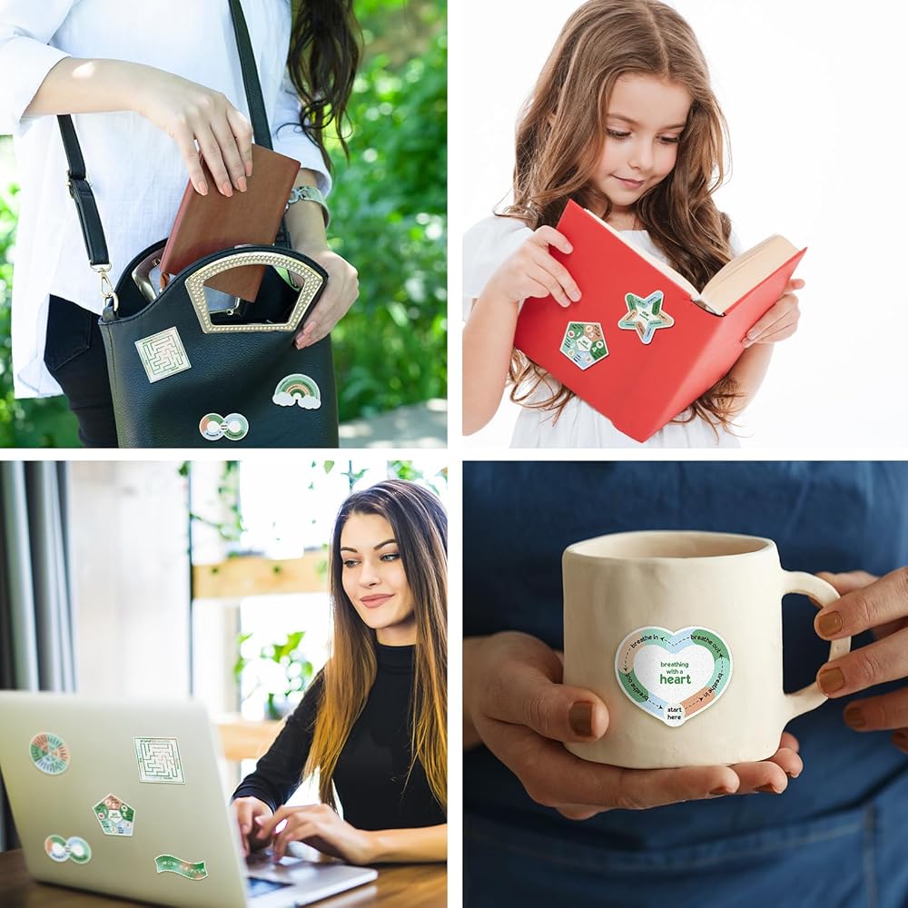 مناسبة للتململ والذهن: يمكن استخدام الملصقات المهدئة كأدوات مفيدة للتململ الخفيف، مما يساعد على تخفيف القلق والتوتر والسماح بالعثور على الراحة والاسترخاء، أو كتذكير لممارسة تقنيات اليقظة لمساعدتك على البقاء مركزًا طوال اليوم.