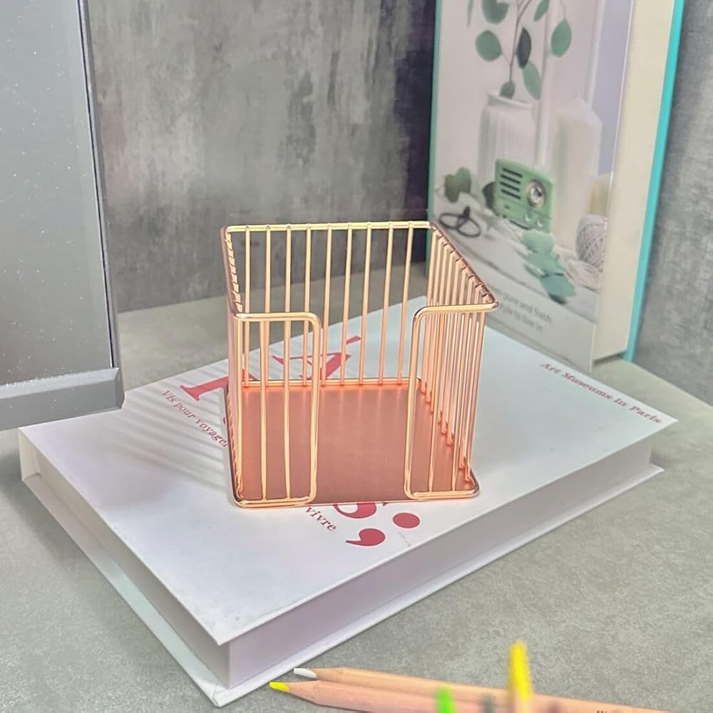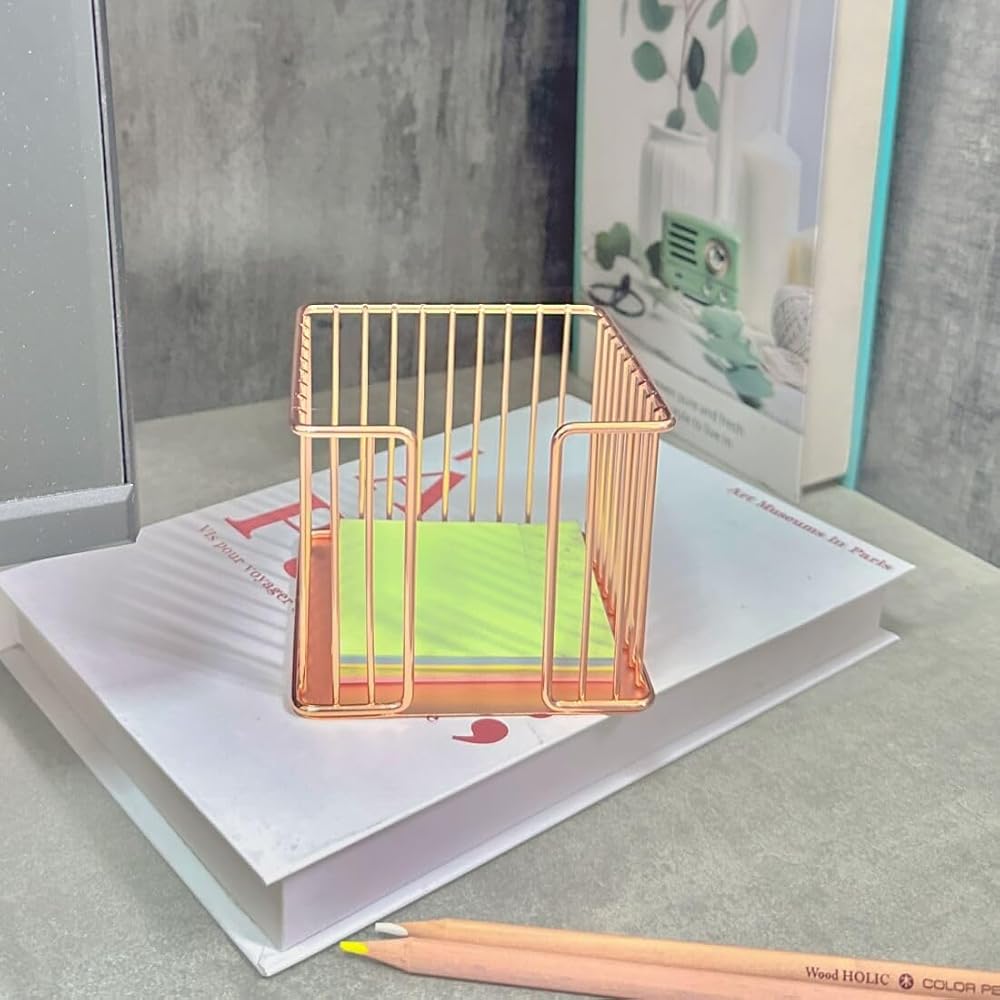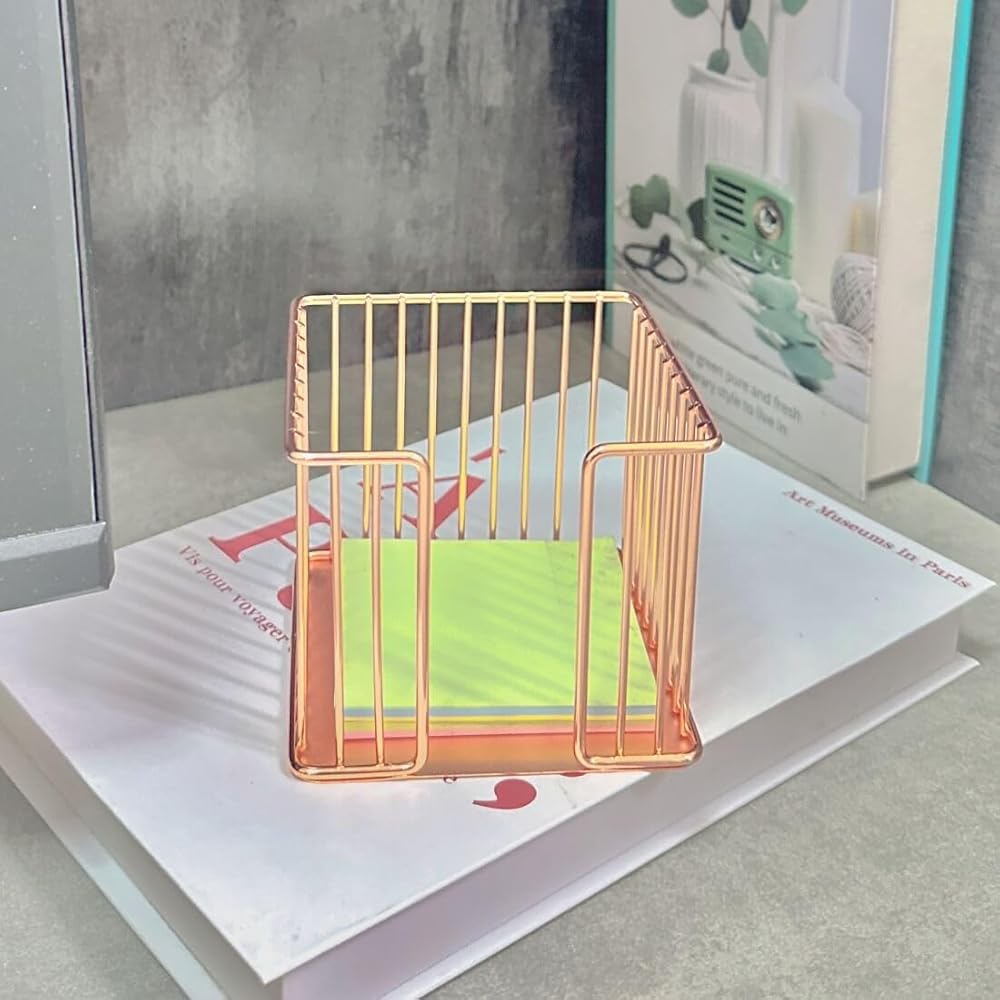 Keep your workspace organized and stylish with this sleek and functional sticky note holder. Crafted from premium metal, this compact holder boasts a beautiful rose gold finish that adds a touch of elegance to any desk or office space. Its compact size makes it perfect for home, office, school, or even travel, ensuring your sticky notes are always within reach. Designed to hold standard-sized sticky note pads, this holder keeps your notes neatly stacked and easily accessible. With its sturdy construction and elegant design, this sticky note holder is not only practical but also a chic addition to your desk accessories. Measuring approximately 3 inches (8 cm) in height, it occupies minimal space while providing ample storage for your reminders and jotted thoughts. Elevate your organization game and add a touch of sophistication to your workspace with this must-have sticky note holder.
