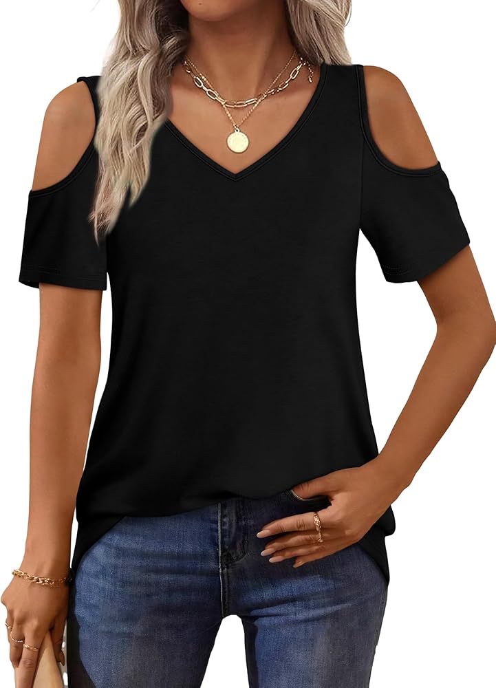 ميزات رائعة: تي شيرتات نسائية فضفاضة، قمصان نسائية كاجوال، تصميم رائع على الكتف البارد، بلوزات بأكمام قصيرة ورقبة على شكل حرف V للسيدات، قمصان صيفية لطيفة مع حاشية جانبية مقسمة، متوفرة بألوان زهرية وثابتة
