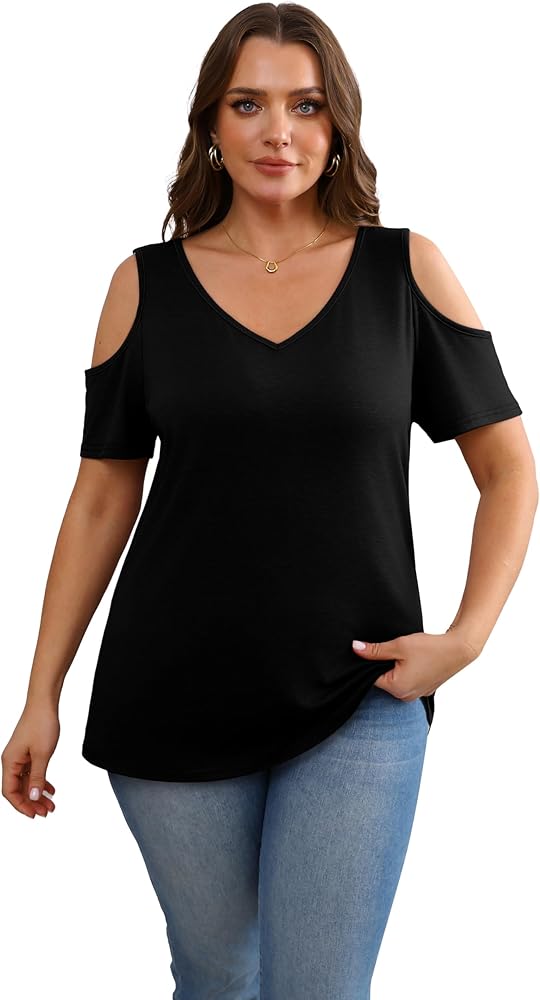 مقاس فضفاض: هذه التي شيرتات تناسب الانسيابية والراحة، وتضفي فتحات الكتف الباردة مظهرًا عصريًا فريدًا على الجزء العلوي، وتكشف عن خطوط الكتف، مما يجذب النساء اللاتي يبحثن عن أسلوب شخصي.