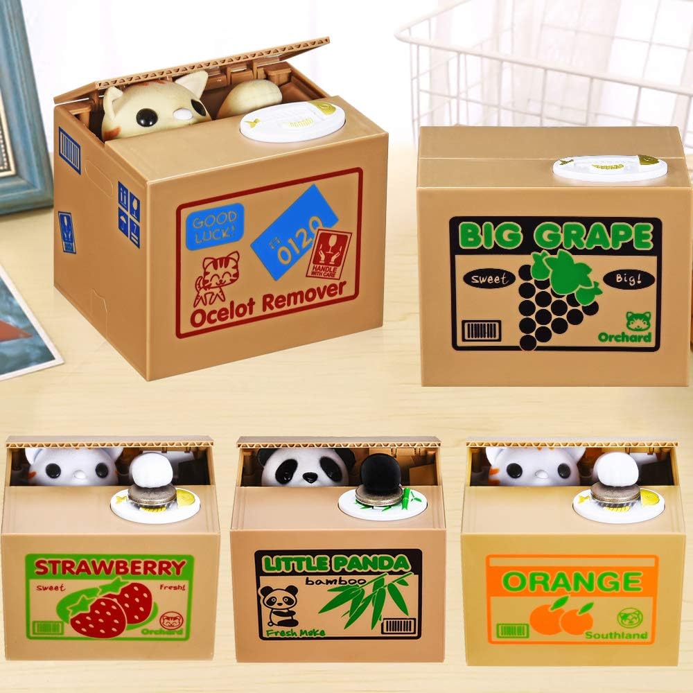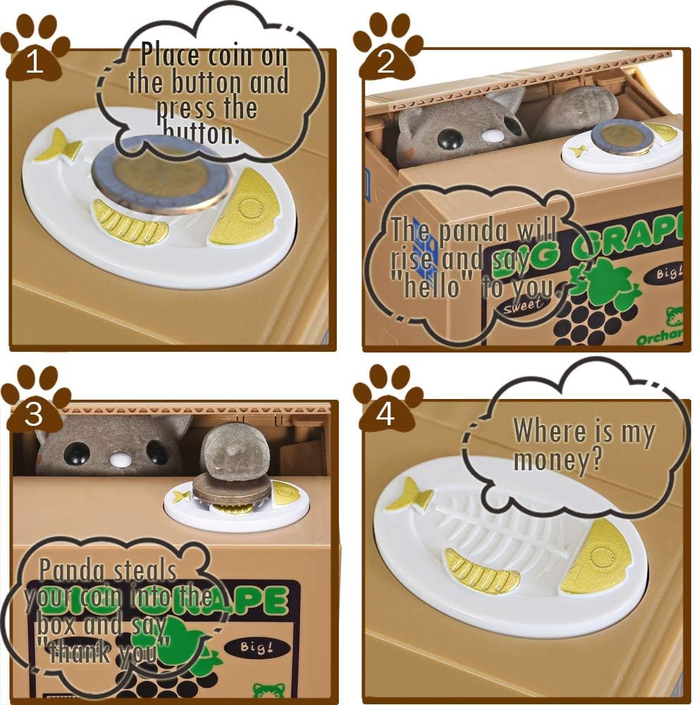 【ترقية تصميم الصوت】 - على عكس بنك أموال الأطفال الآخرين، يتميز هذا الإصدار الأحدث من بنك العملات المعدنية بوظيفة صوتية واضحة: عندما تضع العملات المعدنية على اللوحة، ستقول القطة أو الباندا "مرحبًا" بوضوح. بعد سحب أموالك، سيقول "شكرًا لك"، مما يجلب المزيد من المرح للأطفال.