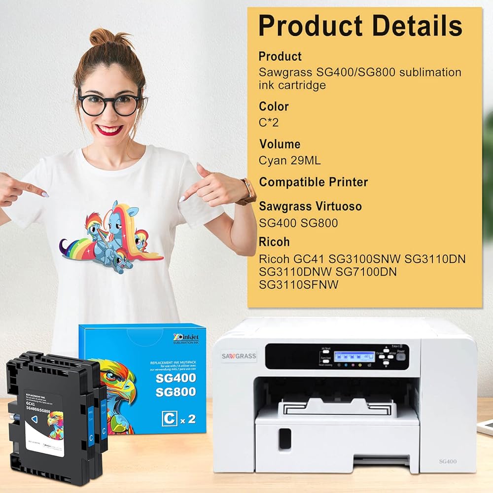 خرطوشة حبر التسامي متوافقة مع طابعة Sawgrass Virtuoso SG400 SG 800 (سماوي)