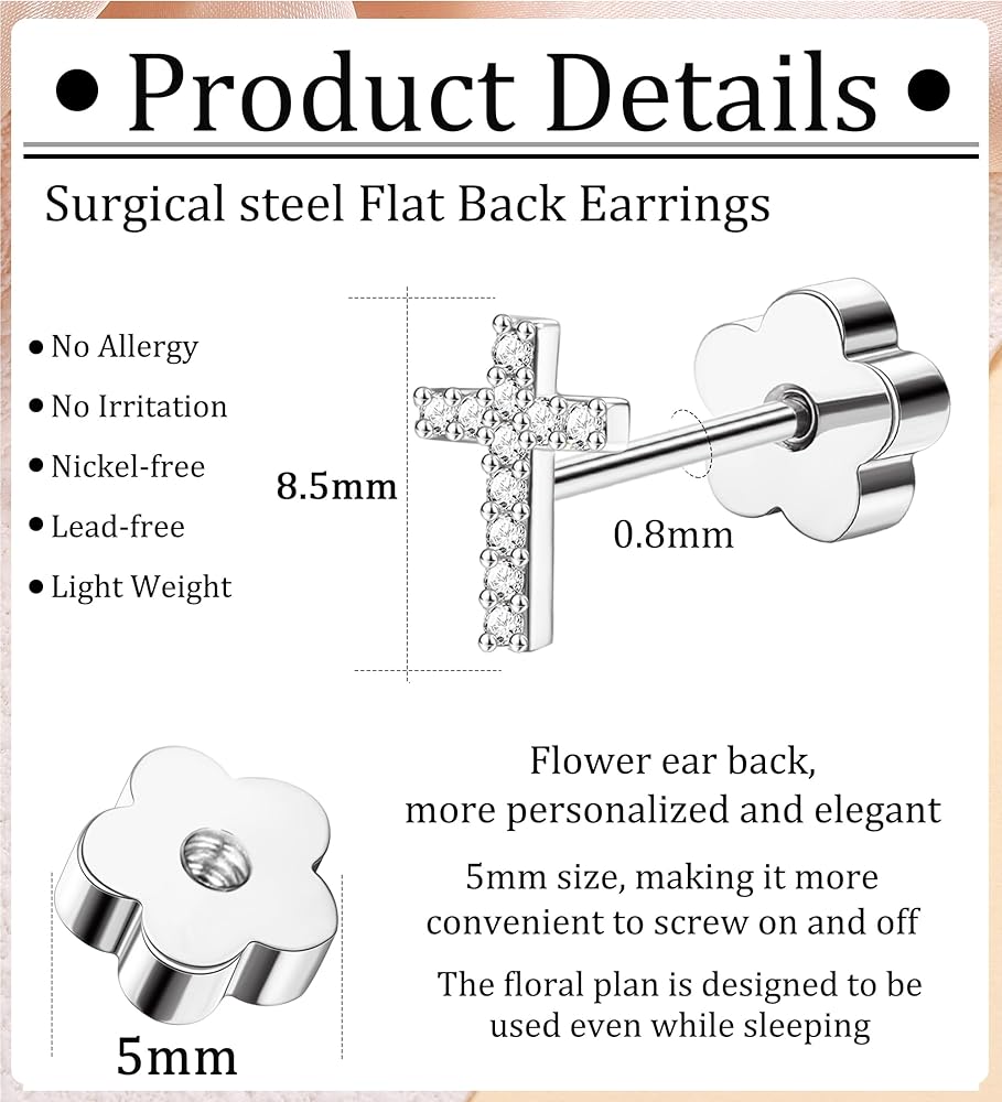 Flat Back Earrings Studs:We have prepared various styles of cartilage stud earrings for you, including cute heart-shaped flatback stud earrings; simple dot screw back earrings; personalized bar stud earrings; there are also elegant and generous cross stud earrings. These different styles of handmade earrings for girls are sufficient to meet your daily matching needs in various occasions, allowing you to easily showcase your unique charm and become a fashion focus.