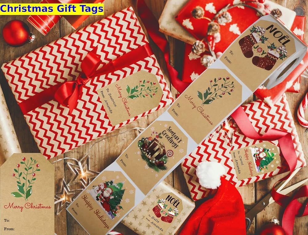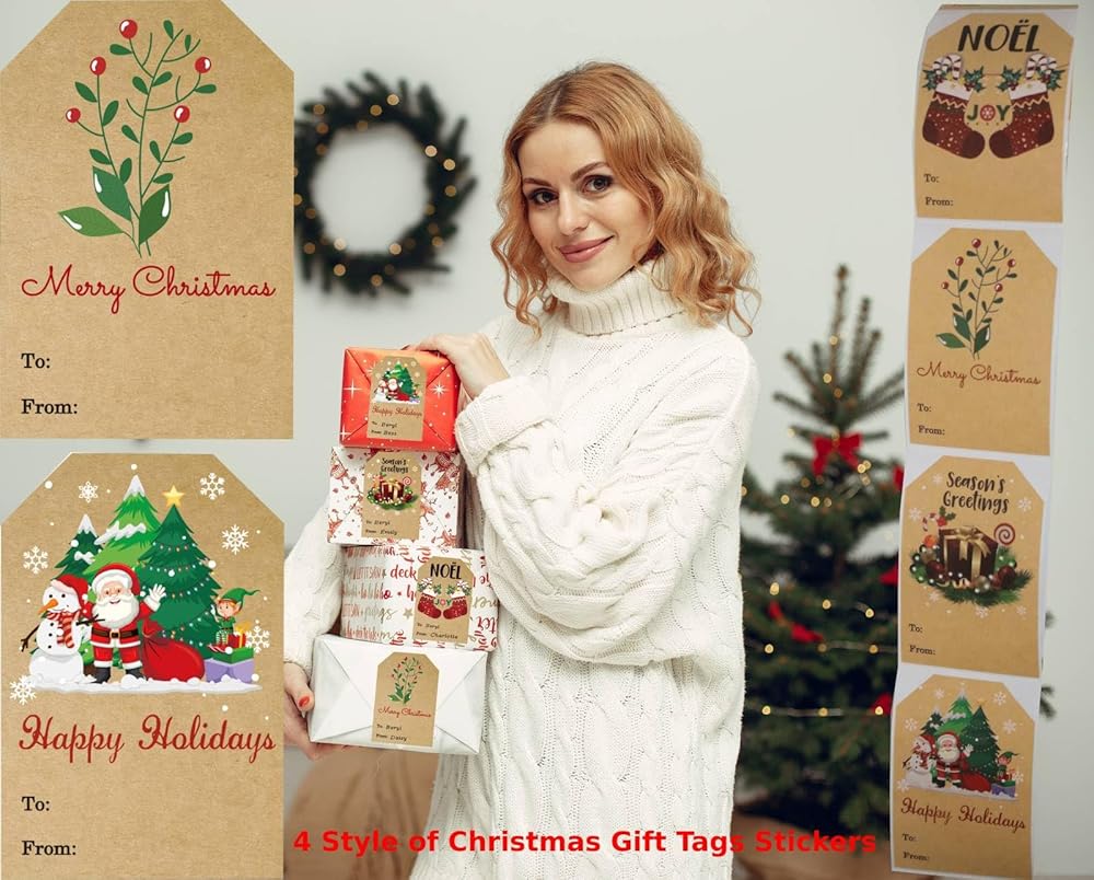 🎄 ارفع مستوى هداياك: تم تصميم ملصقات بطاقات هدايا عيد الميلاد ذاتية اللصق المكونة من 300 قطعة لتعزيز هدايا عطلتك. تضيف علامات هدايا عيد الميلاد المصنوعة من ورق الكرافت لمسة من السحر والدفء إلى هداياك