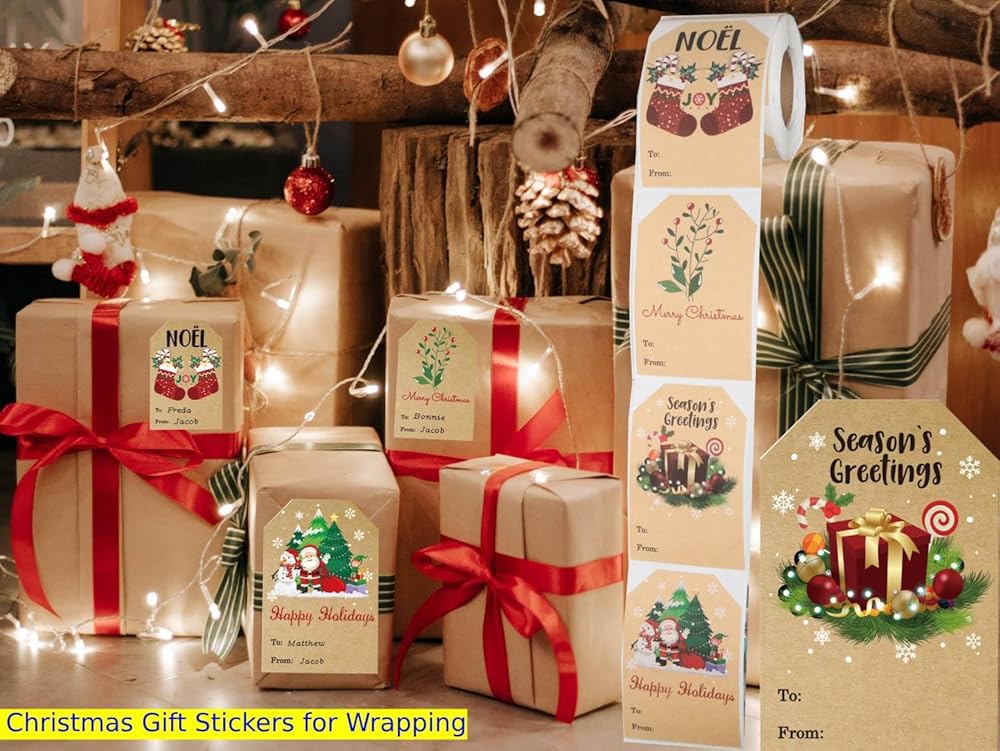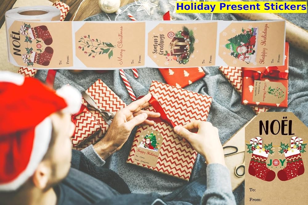 🎁 استخدام متعدد الاستخدامات: ملصقات بطاقات هدايا العطلات هذه لهدايا عيد الميلاد، وهي مثالية لورق تغليف عيد الميلاد، وحقائب هدايا عيد الميلاد، وصناديق وضع العلامات، والأظرف، والعبوات. إنها ملصقات عيد الميلاد المثالية للهدايا، مما يضمن تقديم إيماءاتك المدروسة بشكل جميل